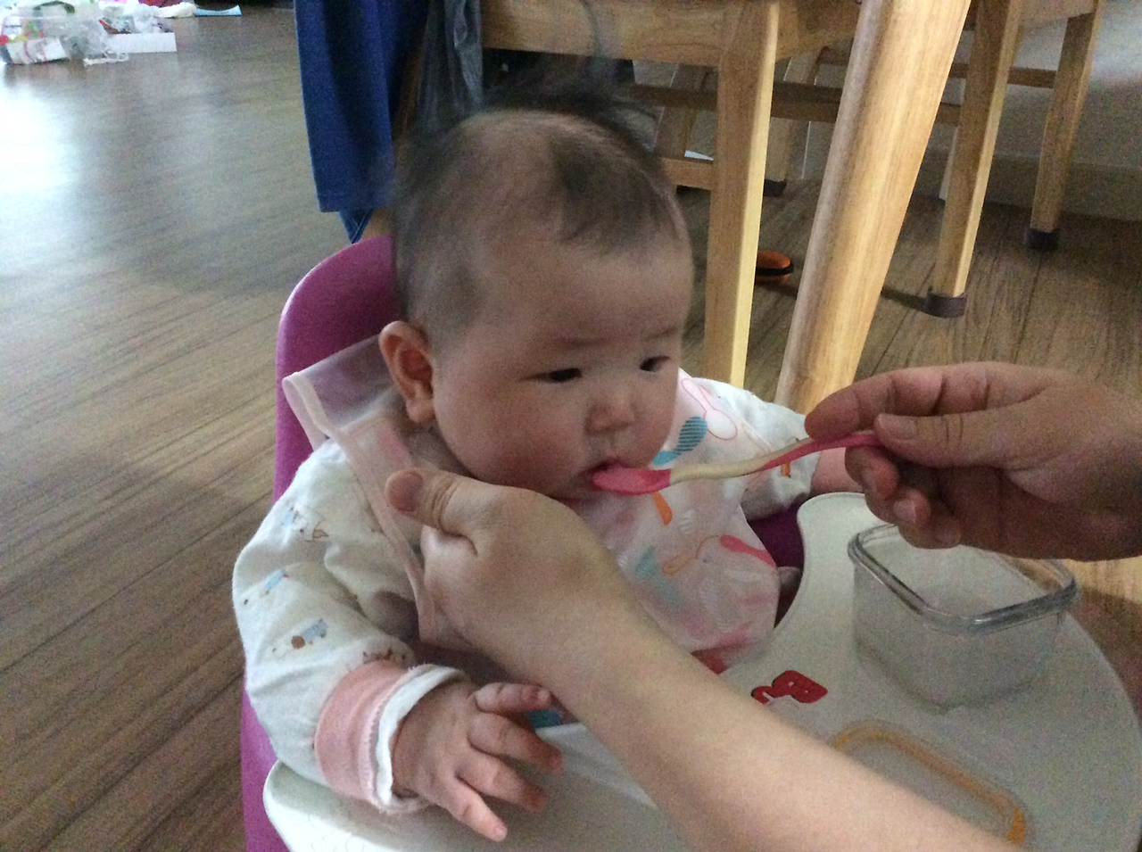 처음으로 나 혼자 이유식을 먹였던 쌀미음 4일째 되는날,