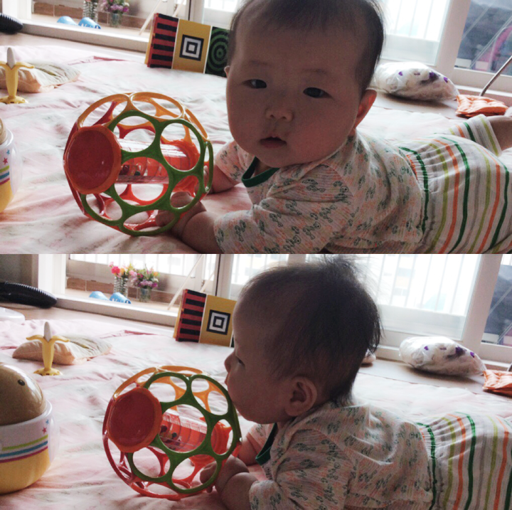 뒤집었다고 이제 장난감을 정면으로 갖고 놀기 시작했다.