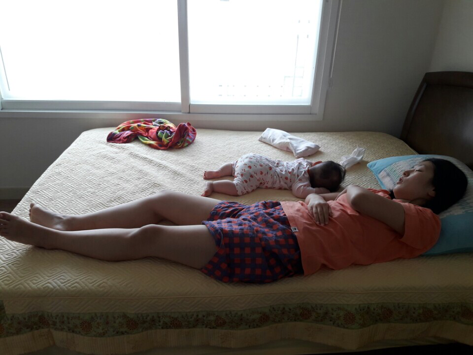 내가 찍힌 저 사진은 밤새 다온이 뒤집기에 시달린 내가 남편 출근도 못보고