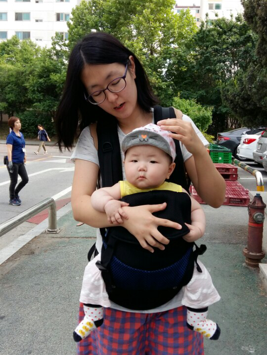 남편 출근 시키고 나서 바로 다온이를 아기띠 둘러매고 집 앞 병원으로 갔는데