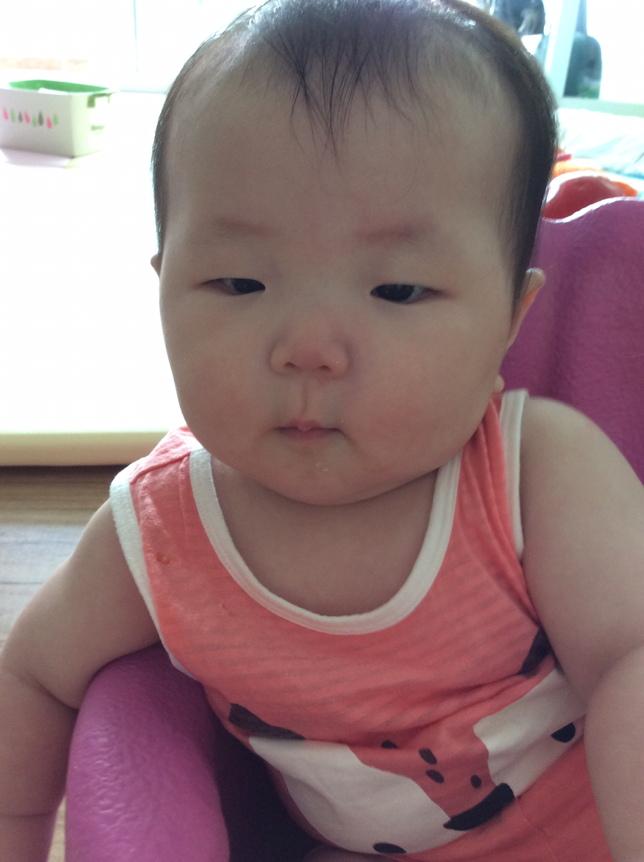 이유식천사 다시 강림하셔서 다 먹고나서 새침한 표정. ㅋㅋ