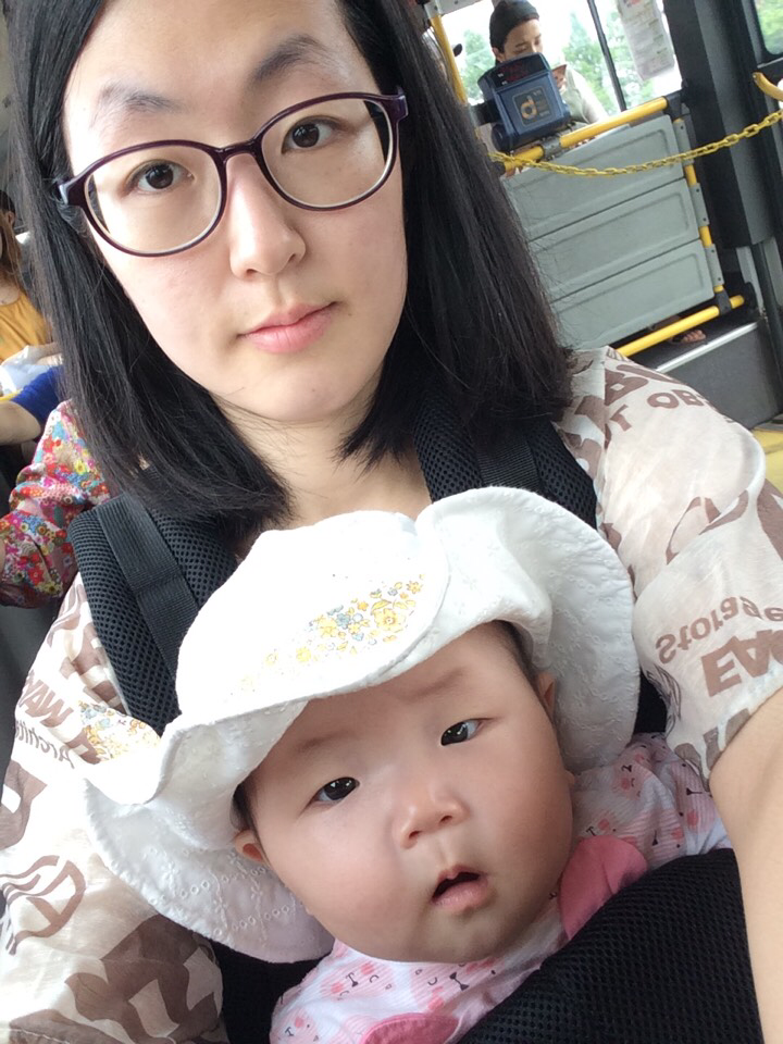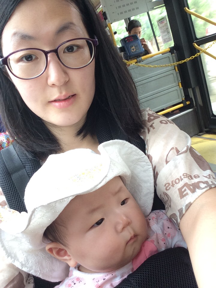생에 첫 버스 타본 다온이. 사진은 표정이 안좋지만 버스가 출발하고 몇분 지나지 않아
