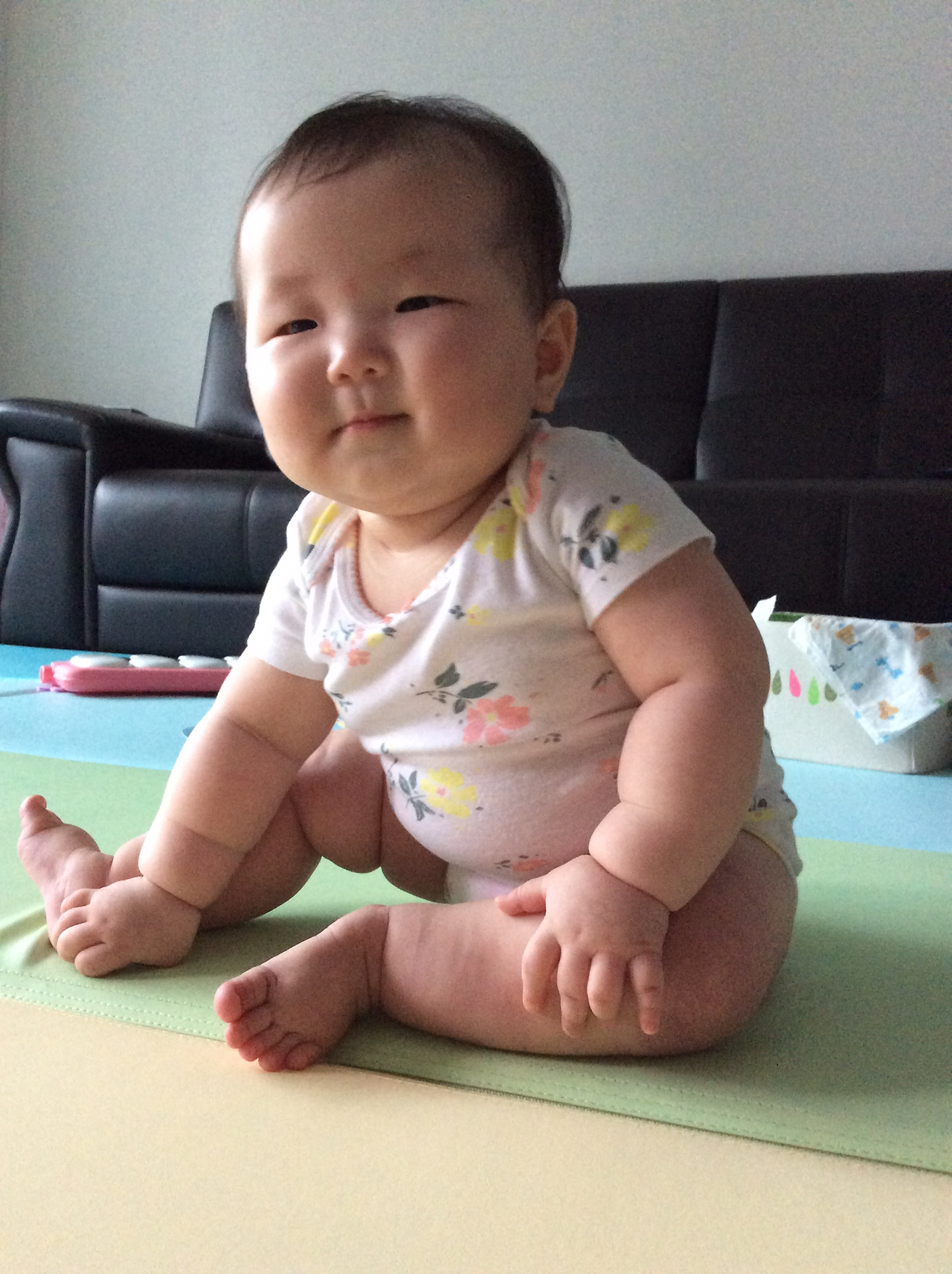 혼자 앉혀놓고.. 내가 해보니 해봤는데 혼자 앉은게 힘들었는지 이런 미소를 지었다.