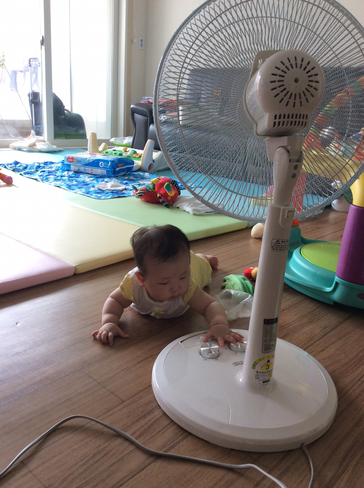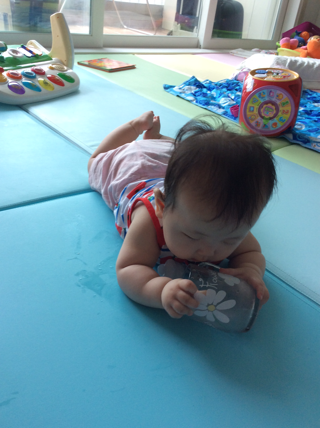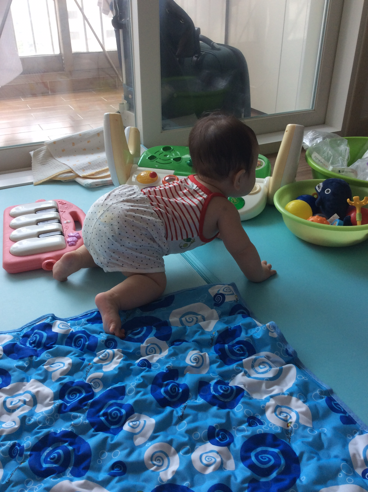 요새 장난감도 장난감이지만 이동의 자유를 맘껏 누리려는 듯 매트를 수시로 탈출해서