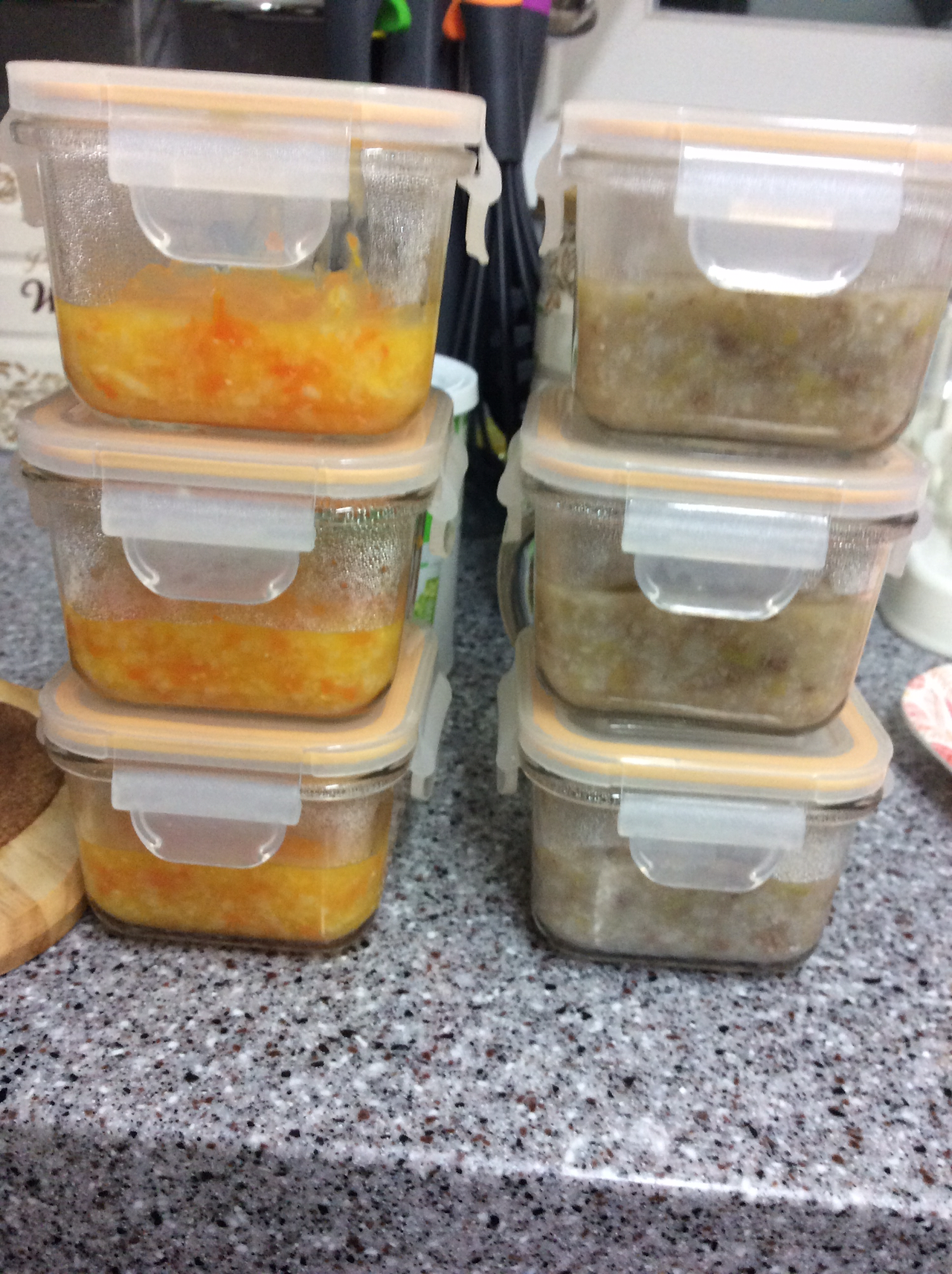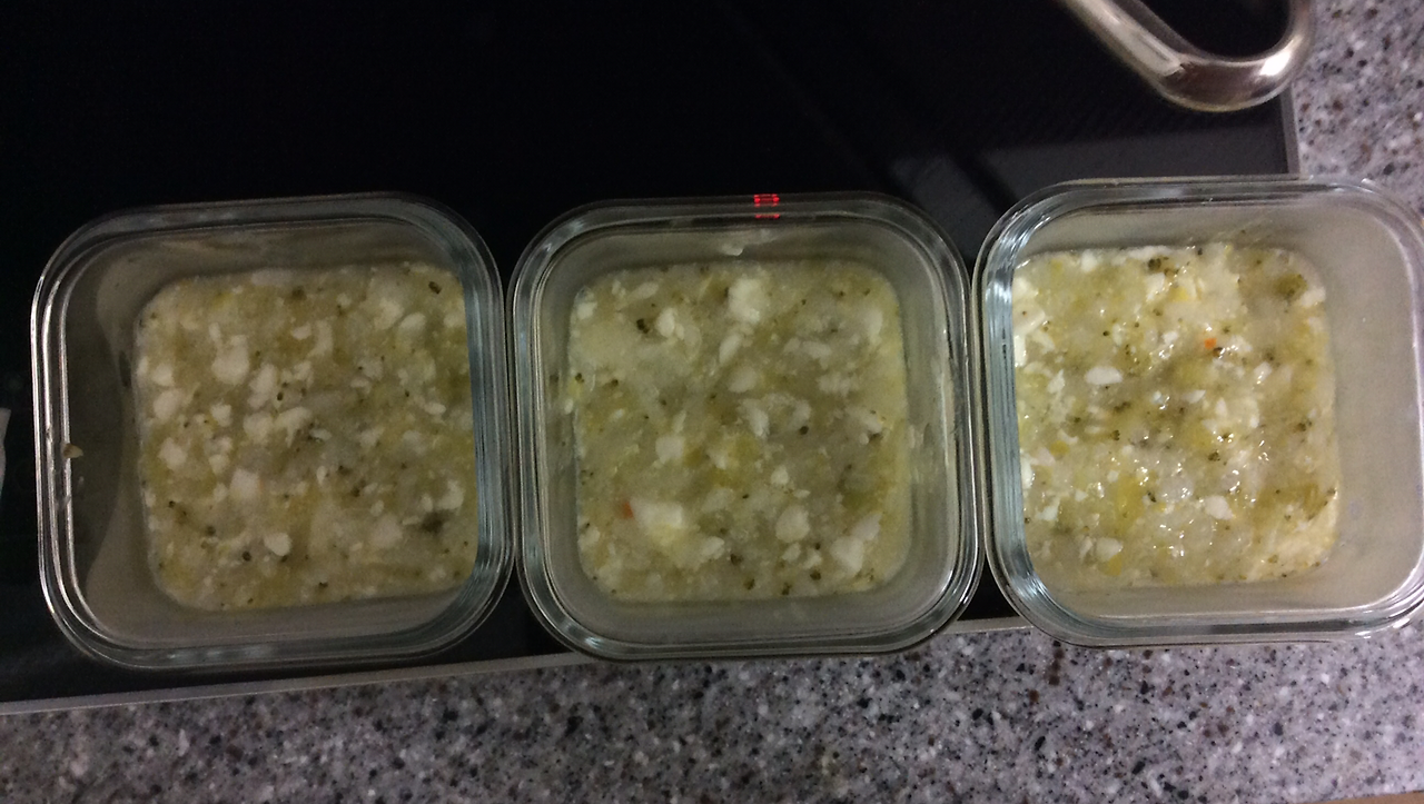 그렇게 만든 브로콜리연두부애호박죽과 사진은 없지만 소고기단호박완두콩죽.