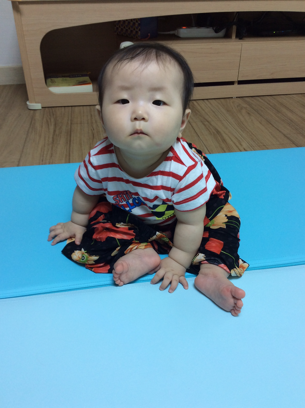 껌딱지 홍다온. 오늘 이유식 만든다고 엄마 발치에서 계속 서성거린 너를