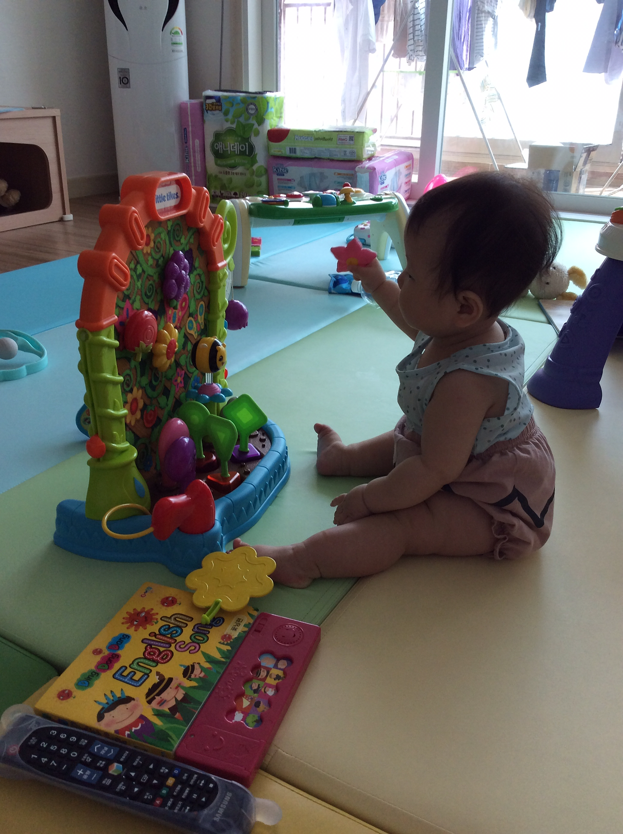 게다가 요즘 잡고 서는것도 모자라 걸으려하는 홍다온이 힘으로 버티는 바람에