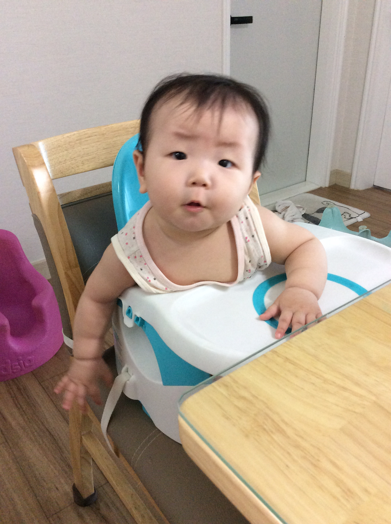 부스터 게시. 식탁의자에 고정도 되고 다온이가 식판을 못빼게