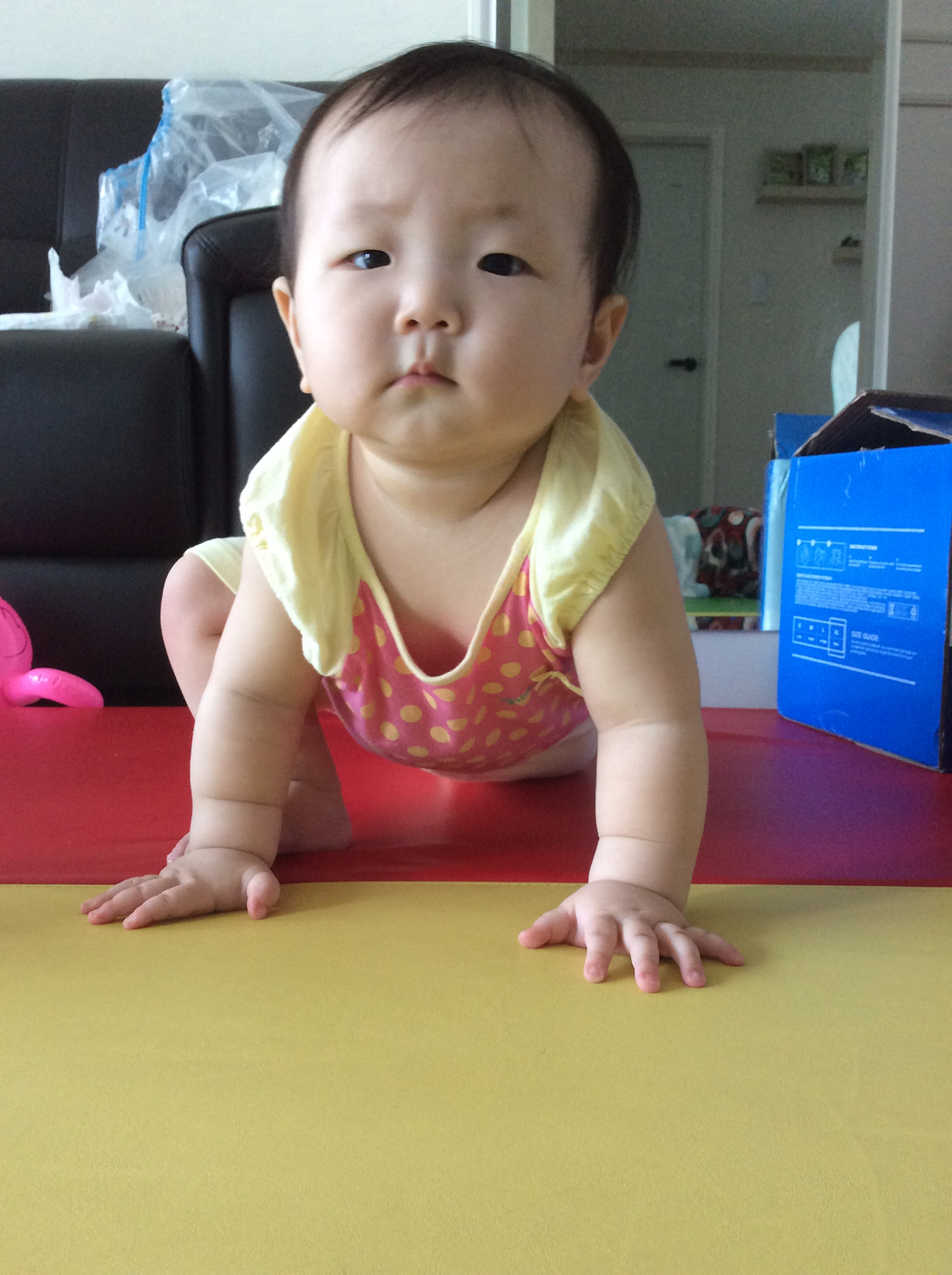 이제 다온이가 아무리 힘으로 버텨도 내가 뭘 할때는 무조건 보행기다.