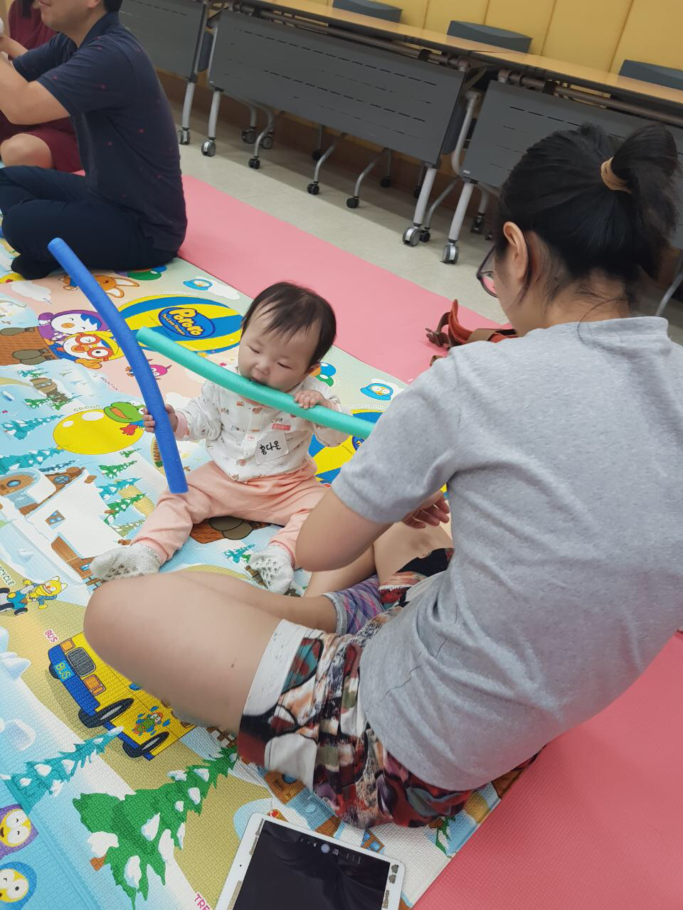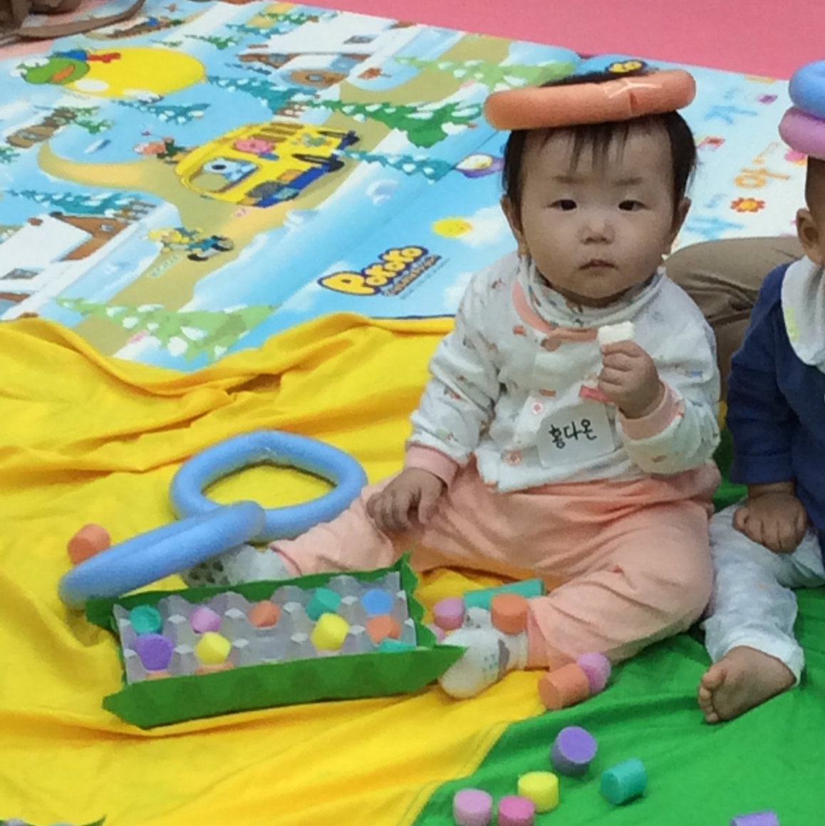 다온이 옆에 앉은 아기가 칭얼대기 시작했다.