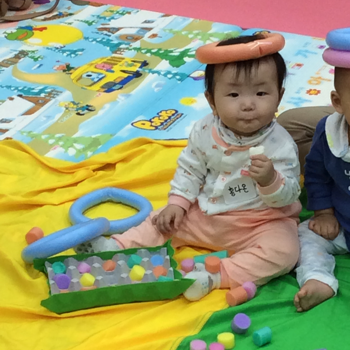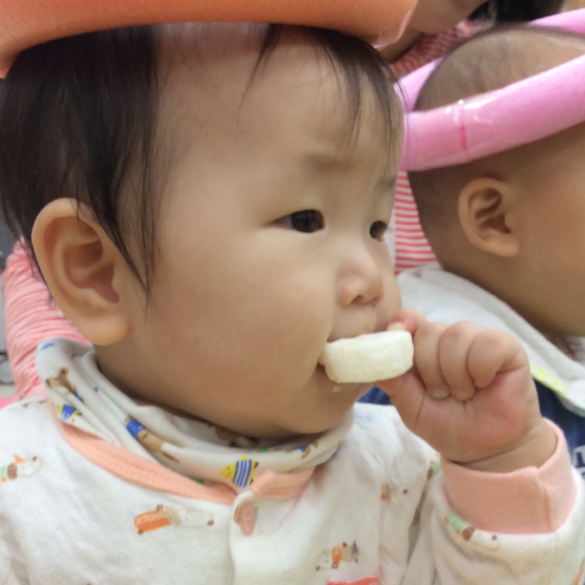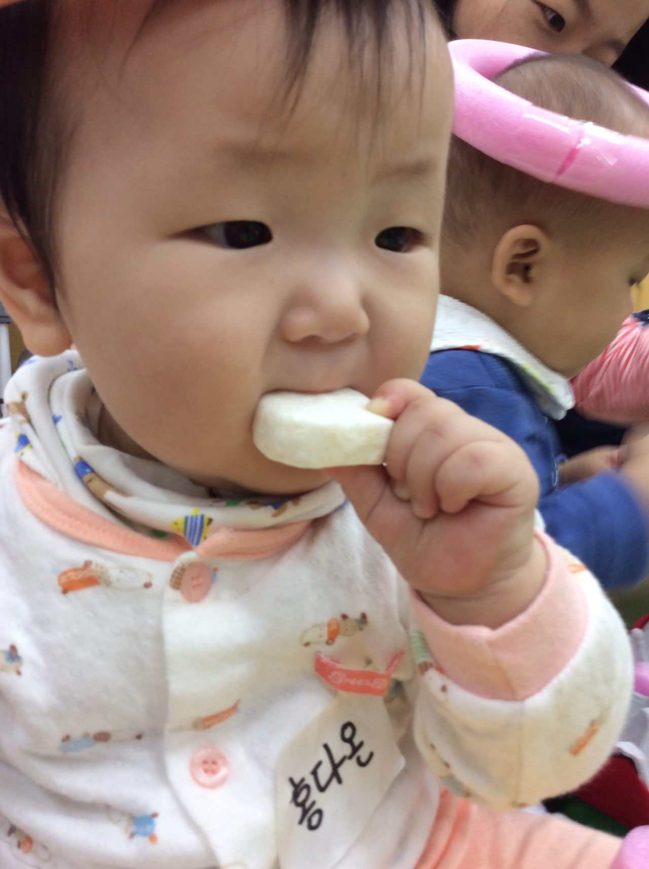 그리고 그 아이의 엄마가 꺼낸 떡뻥. 옆친구가 먹는걸 뚫어지게 본 다온이..