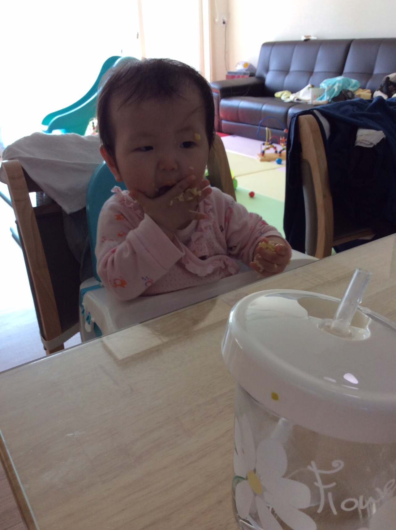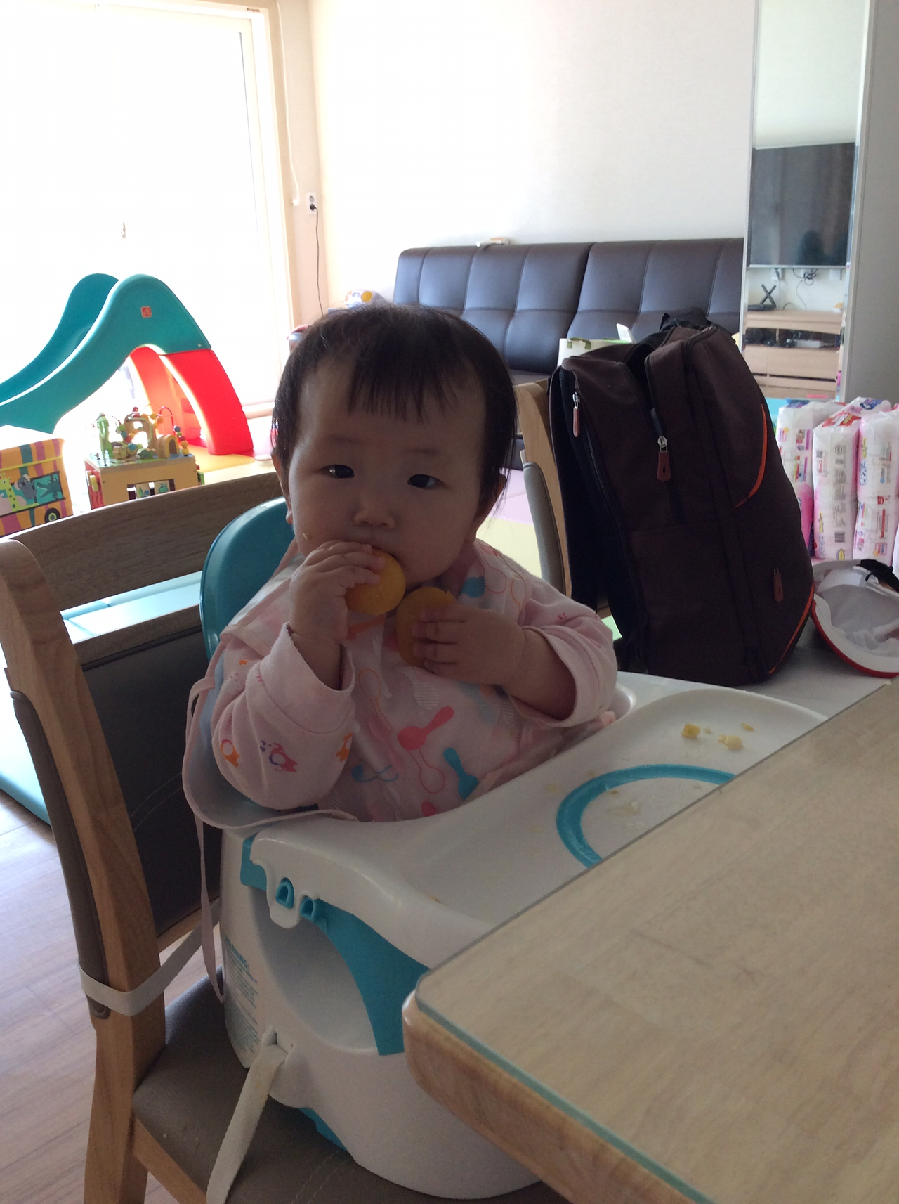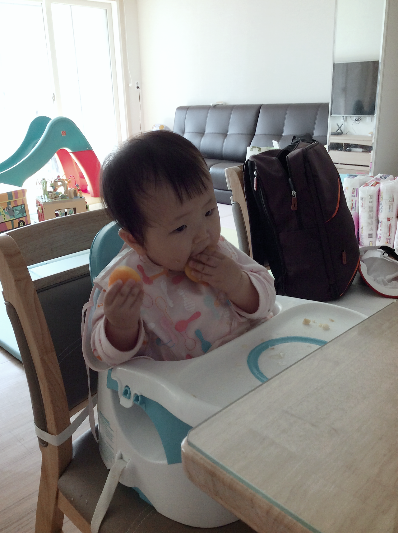 폭풍먹방. 완전신남. ㅋㅋ뒷처리는 힘들지만 내새끼가 웃으니 뿌듯했다.