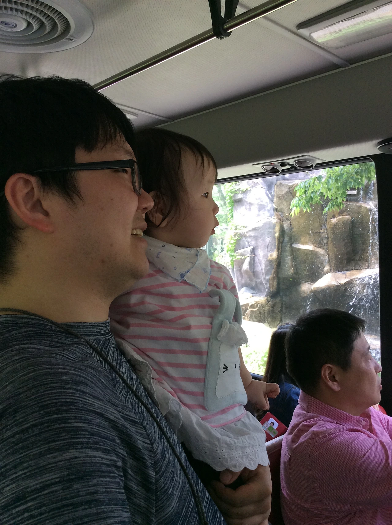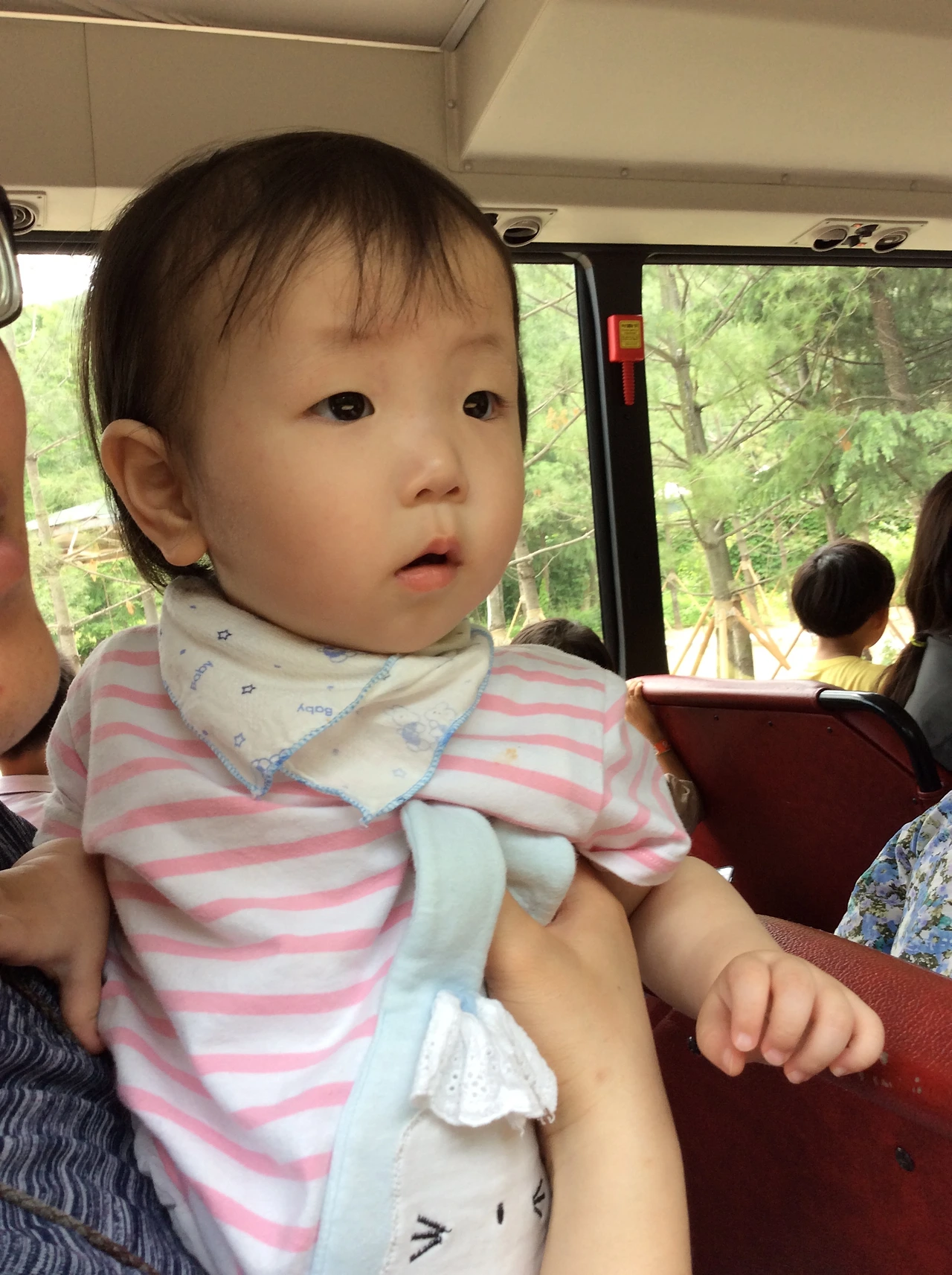 출발할때만 얌전히 앉아있던 다온이가 공중에 이르자 자꾸 일어서려고 해서 안고있느라