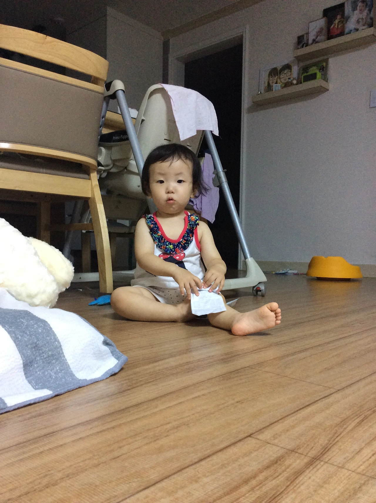 얼마전부터는 잡고라도 잠깐씩 서있고 오늘은 갑자기 벌떡 자리에서 일어나서 3초정도