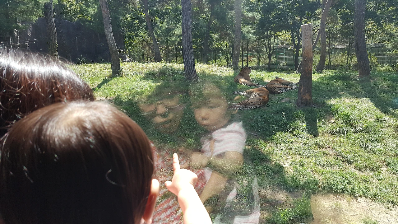 맹수라는게 본능적으로 느껴지는지 나를 꼭껴안고 조심조심 구경을 했다.