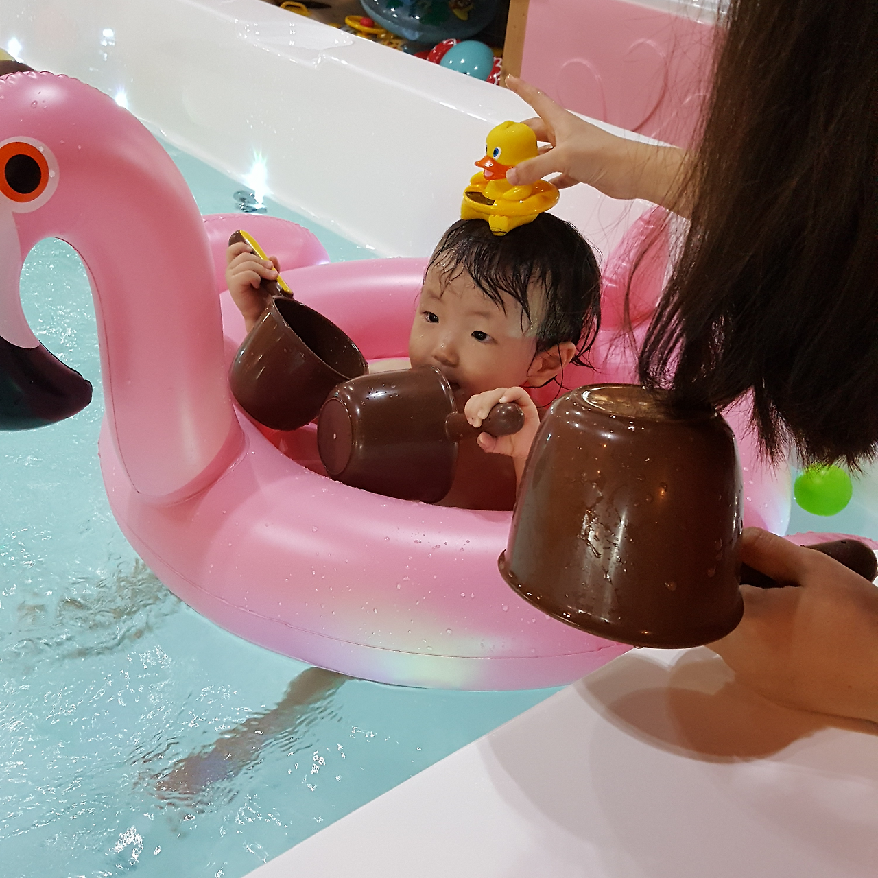아주머니가 학 튜브 타자고 했는데 다온이가 못알아들어서 내가 또 친히 플라밍고라고 설명해주었다.