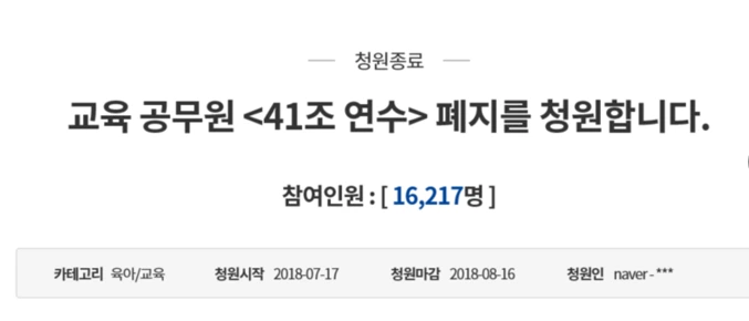 한 청원때문이다. 교원 41조 연수를 없애달라는 누군가의 청원.