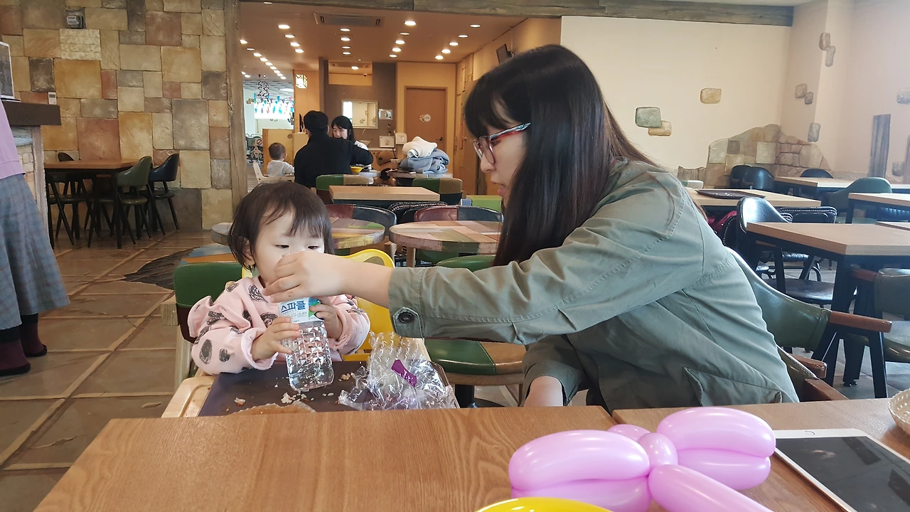 동물들 보는 것보다 키즈카페에서 더 신난다 온이 방방에서 노는데, 아빠가 아니라 엄마와 함께