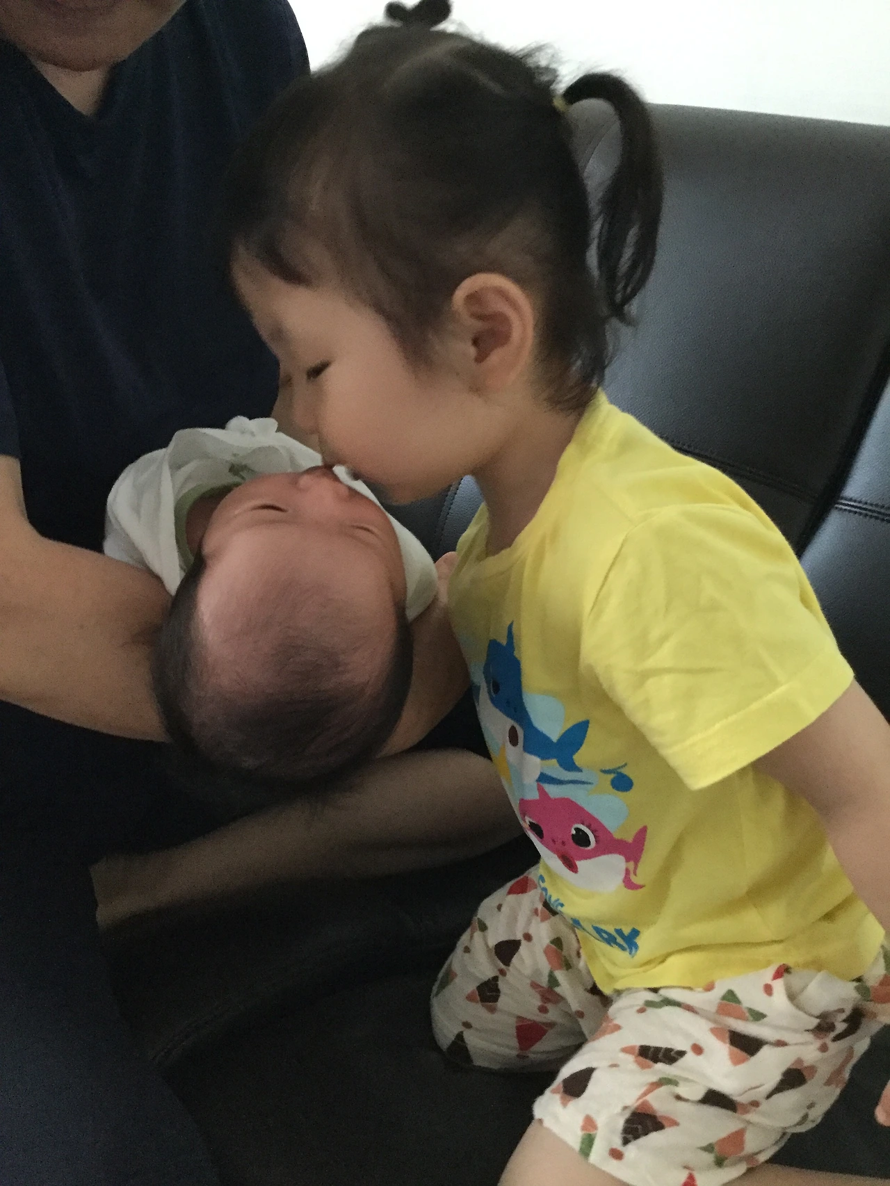 다온이때랑 마찬가지로 여전히 나와 남편은 4키로가 되지 않는 아이에게 쩔쩔매고 있고