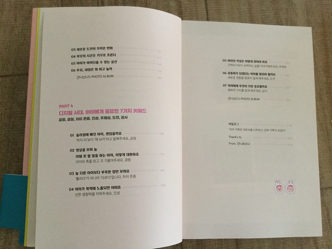 이 책이 더 나에게 매력적이었던 이유는 위에서 보다시피 파트파트 마다 저자의 자녀사랑이 묻어났기때문이다.