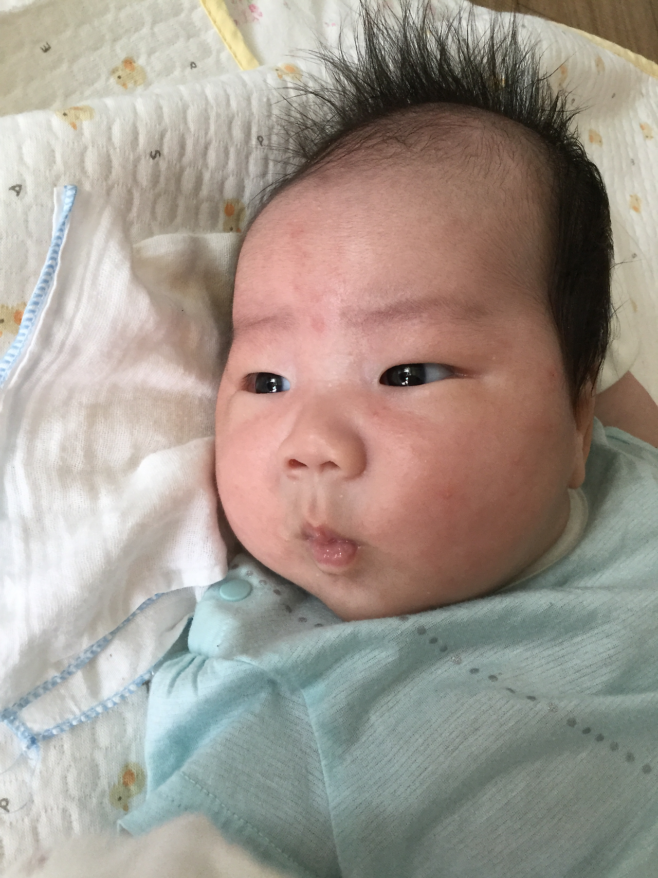 복실복실 차오른 얼굴살도 예쁘고 얼굴에 오돌도톨 올라온 땀띠도 지루성 피부염도 예쁘다.