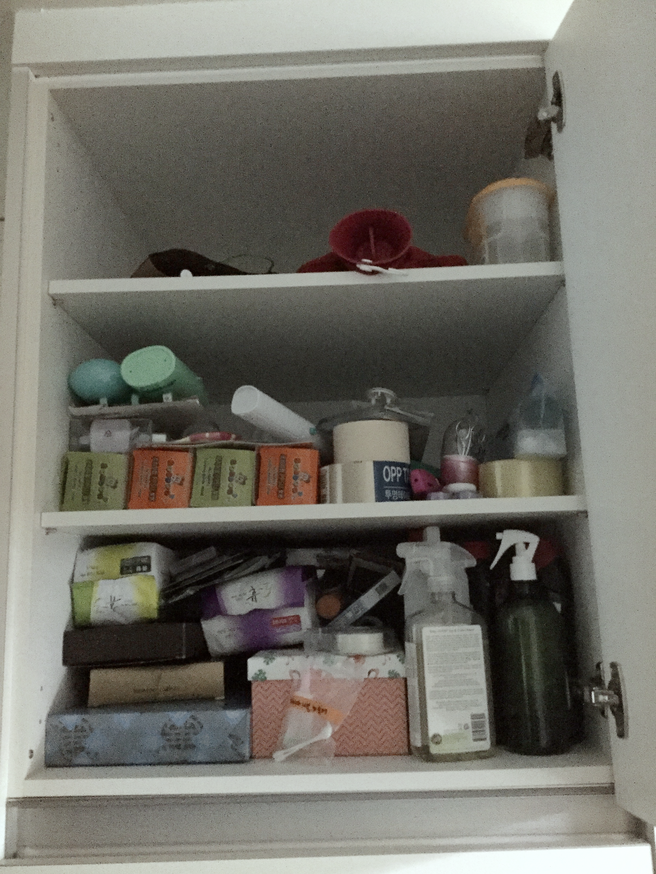 모든 물건을 두 칸에 다 채울수도 있었지만 눈에 안보이면 또 있는지도 모르고 재 구매하는 사태가