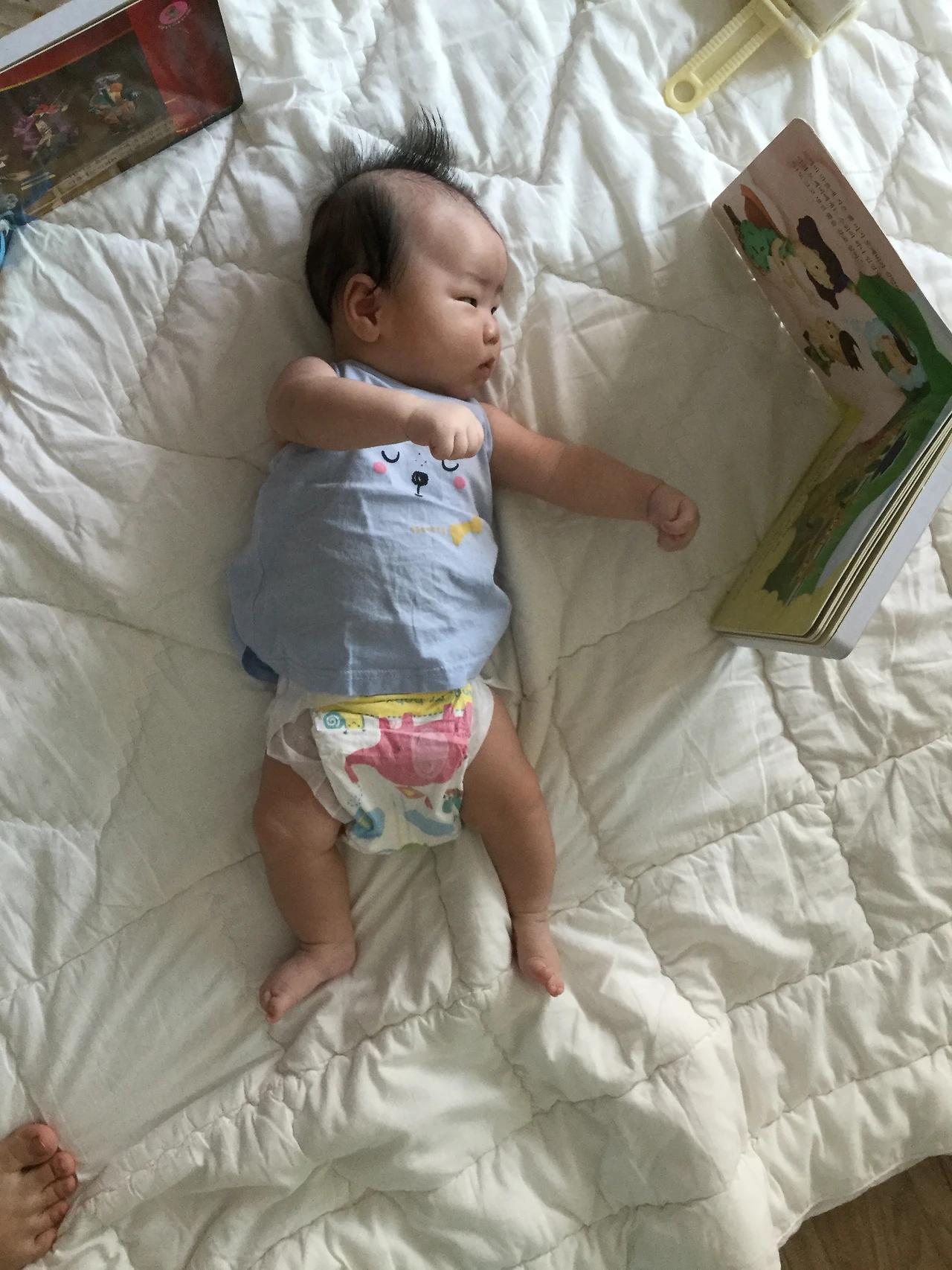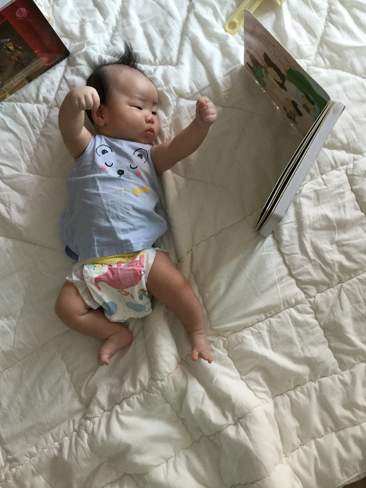 초첨책이 지겨운듯 안보길레 다른책을 펴줬더니(돌잡이명화) 싸우려는지 허공에 주먹질....ㅋㅋㅋㅋ
