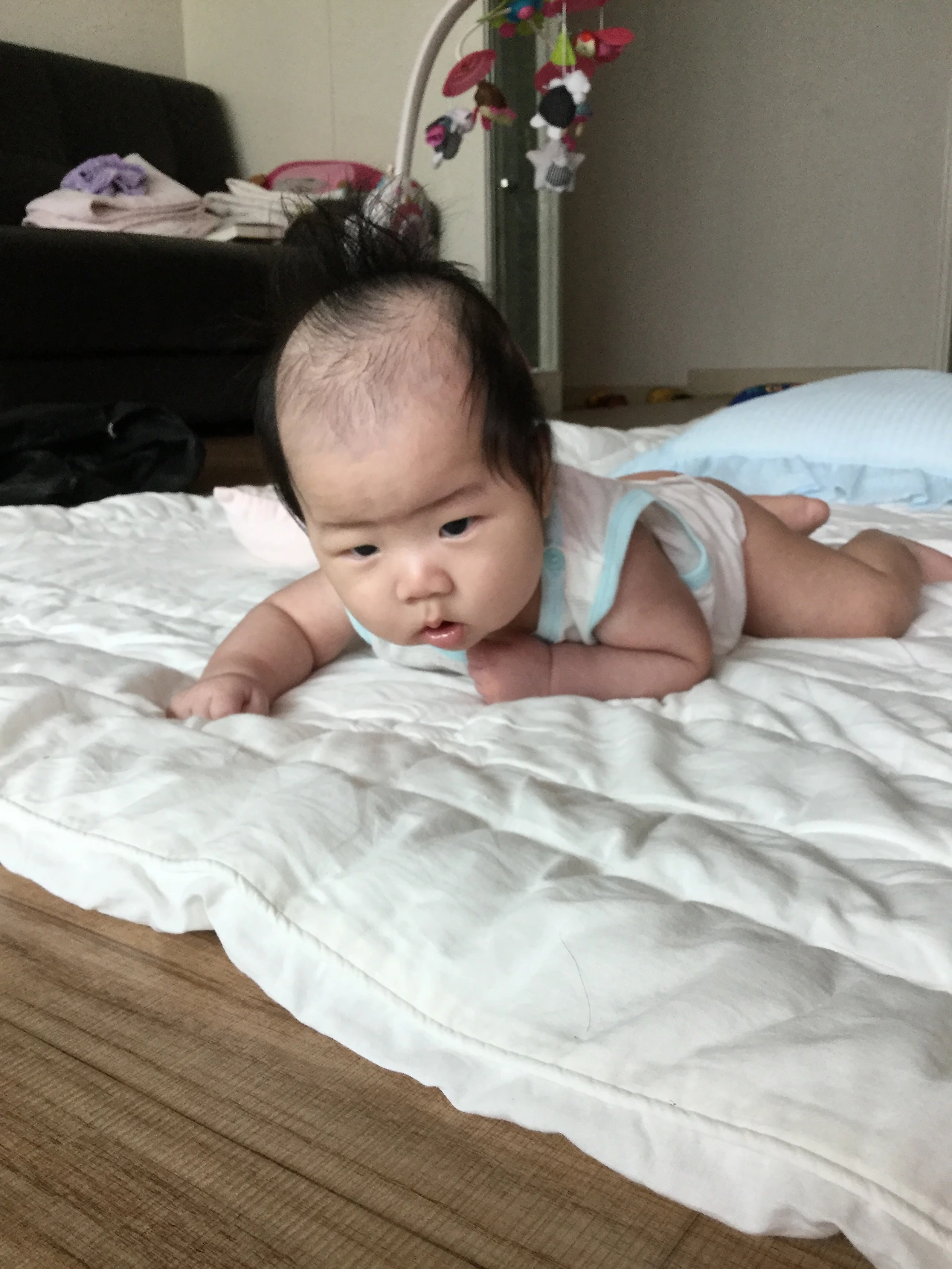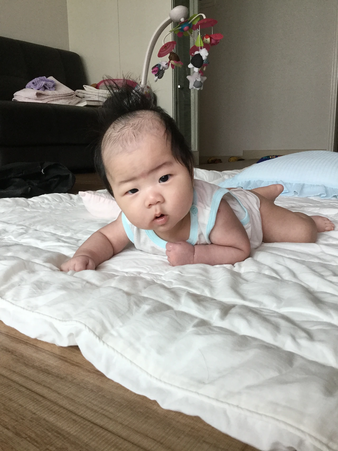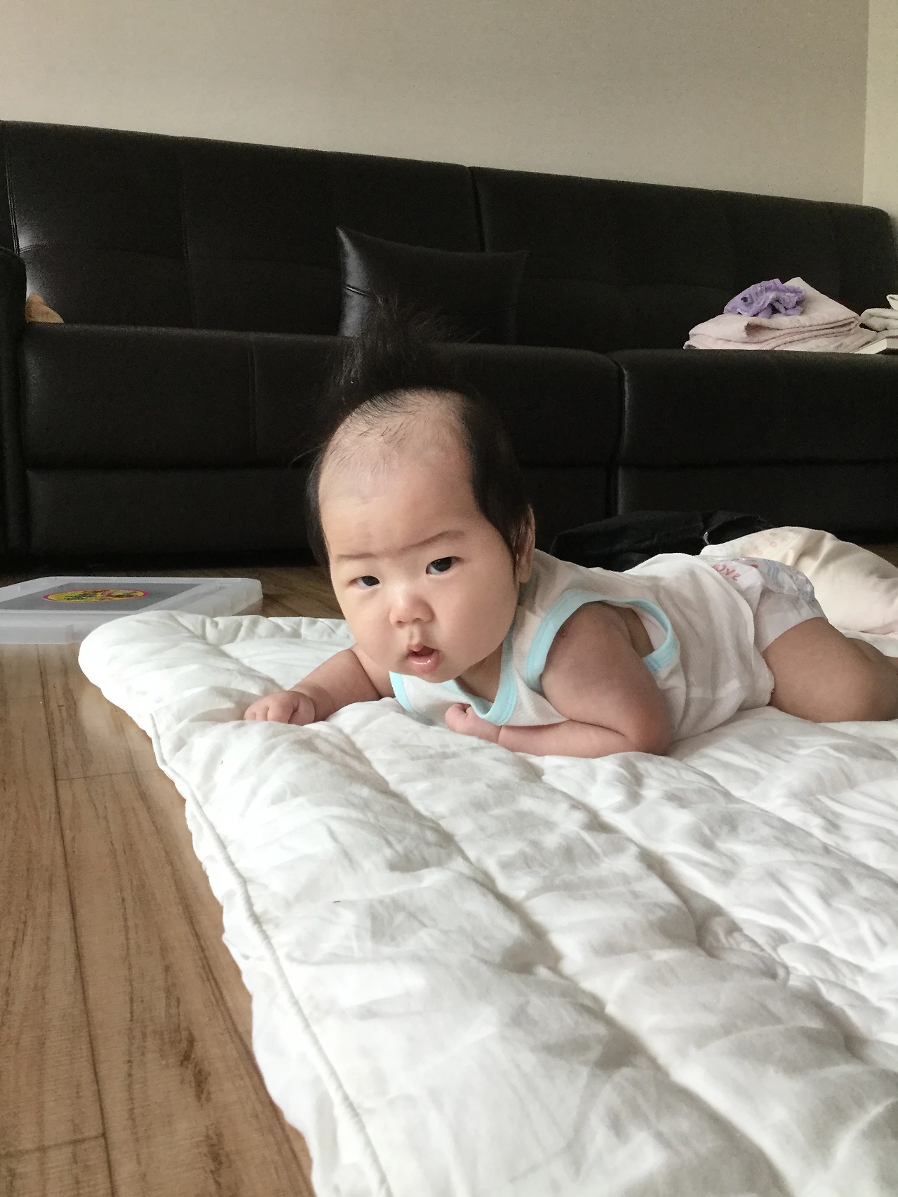그러고 얼마 지나지 않아 라온이는 뒤집은것도 모자라 고개를 들기 시작했다.