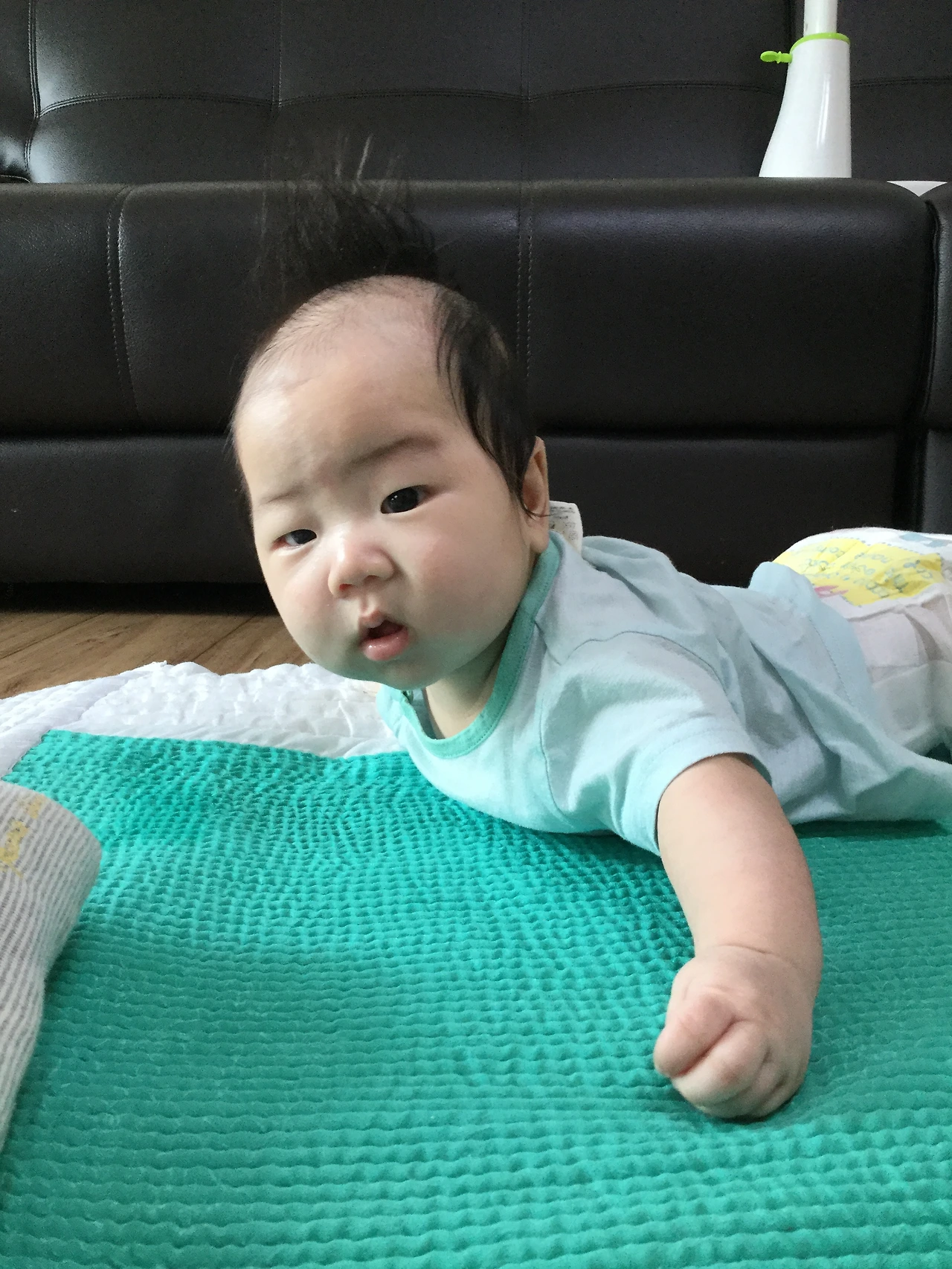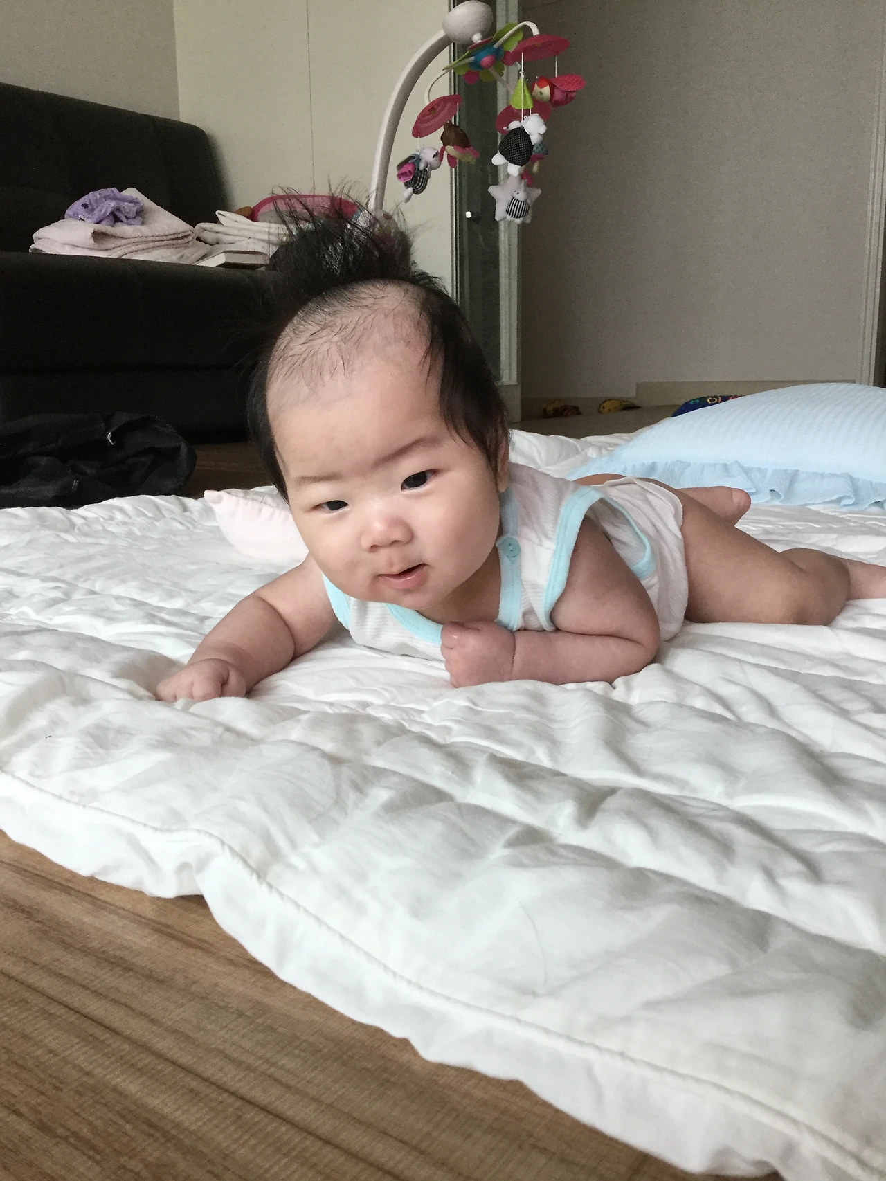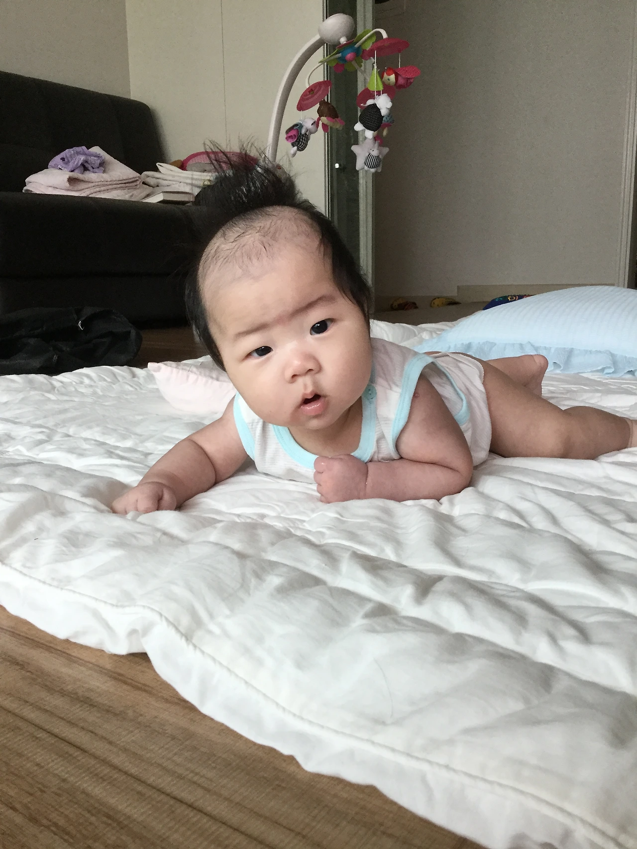 그러고 얼마 지나지 않아 라온이는 뒤집은것도 모자라 고개를 들기 시작했다.