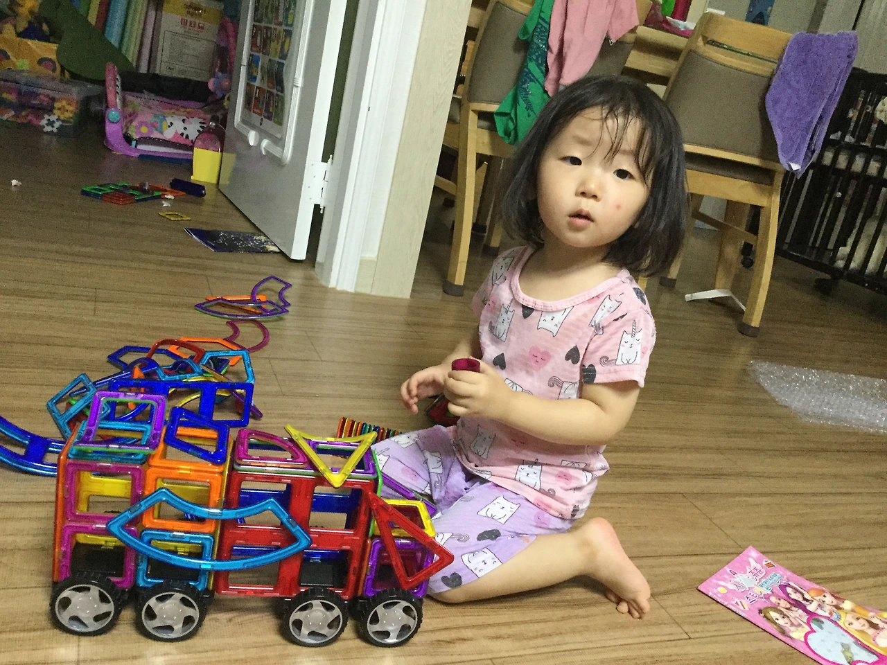 더불어 다온이가 키즈카페에서 자석블럭을 잘 가지고 놀아서,