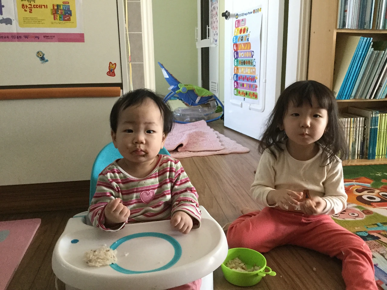 나는..애들 밥주고, 간식주고, 같이 놀고