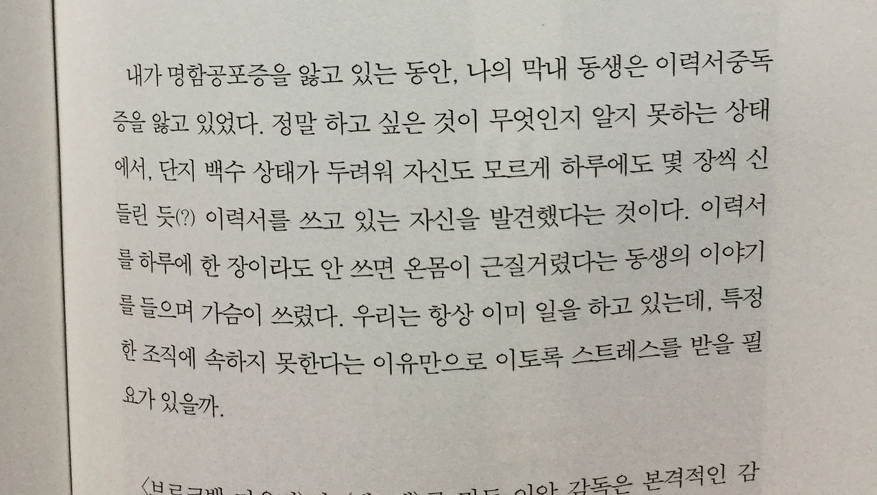 지금 소감을 쓰는 시점에서는 작가의 20대가 참 많은 후회들로 지나갔구나 라는 느낌이 든다.