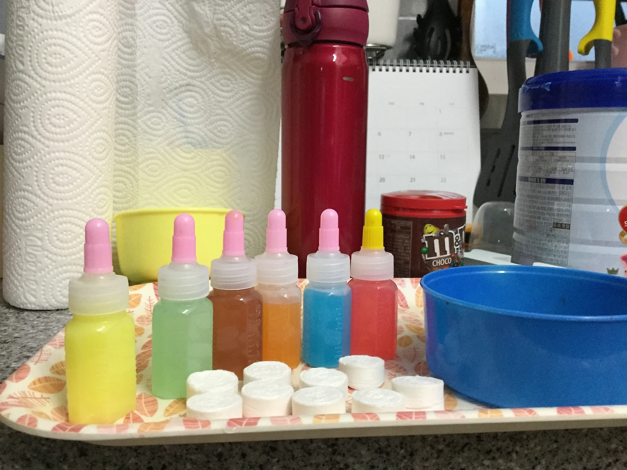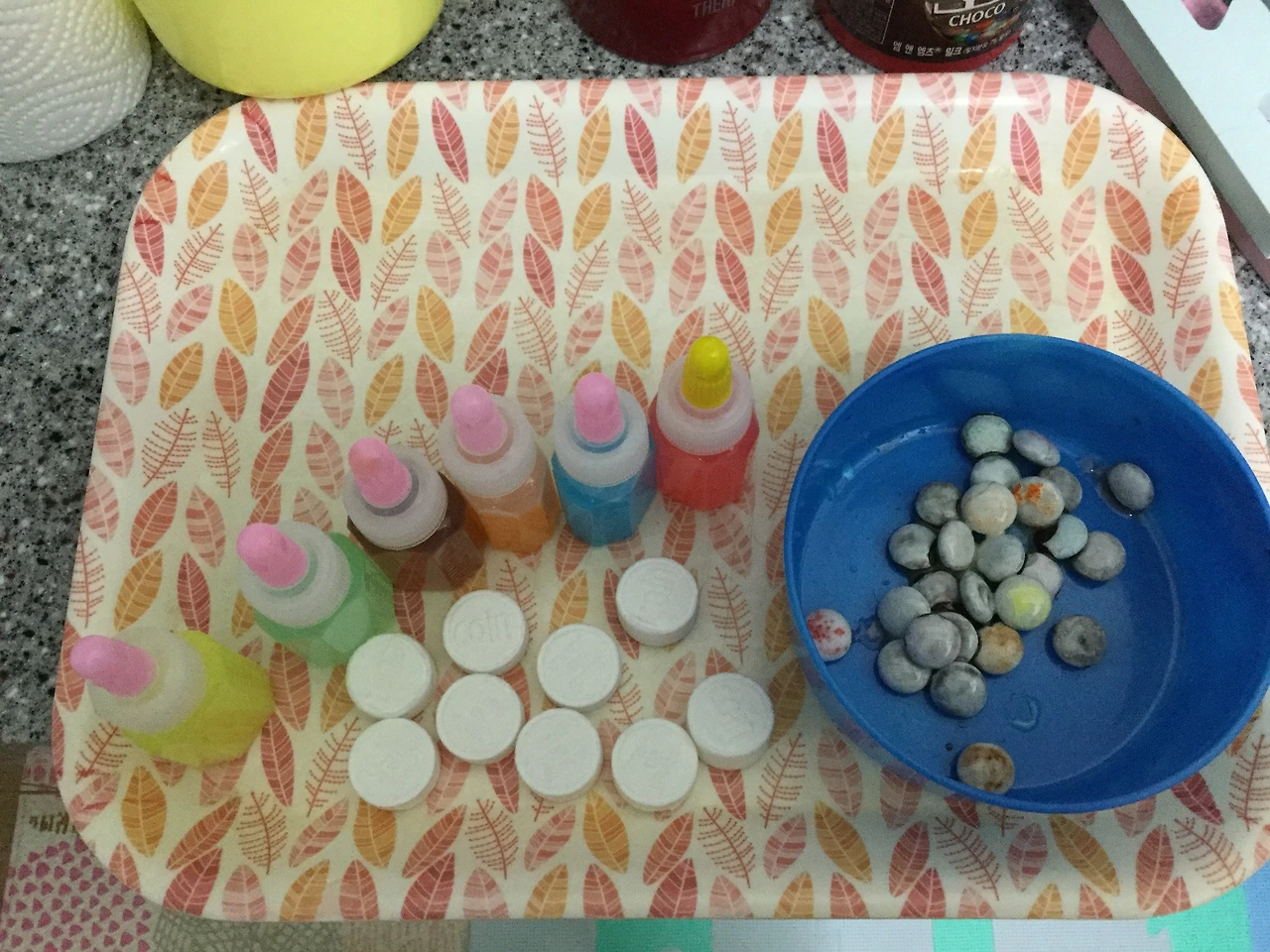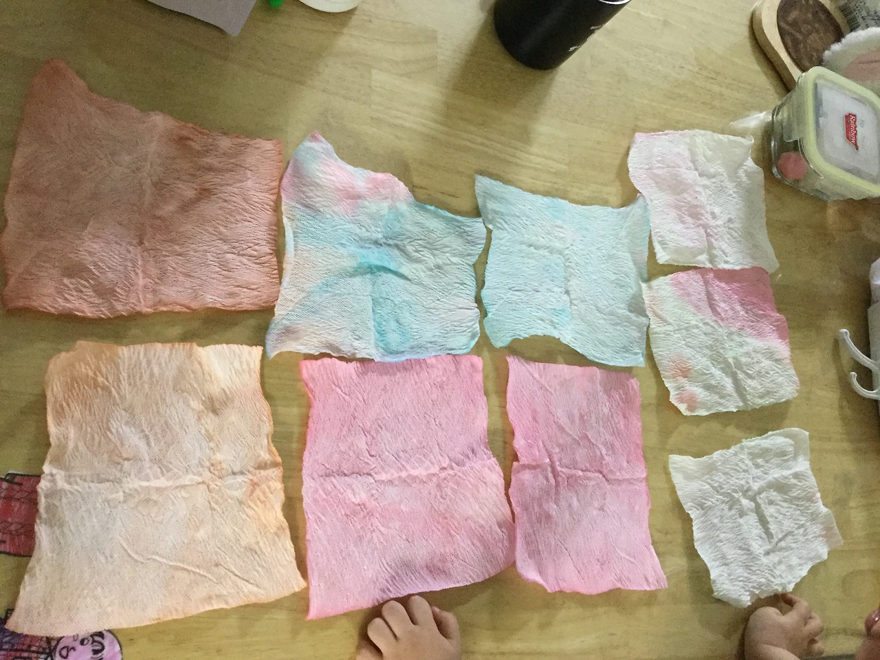 물에 흔들어 색소를 빼서 사용했다. 생각보다 색감이 너무 예쁘고 다양해서