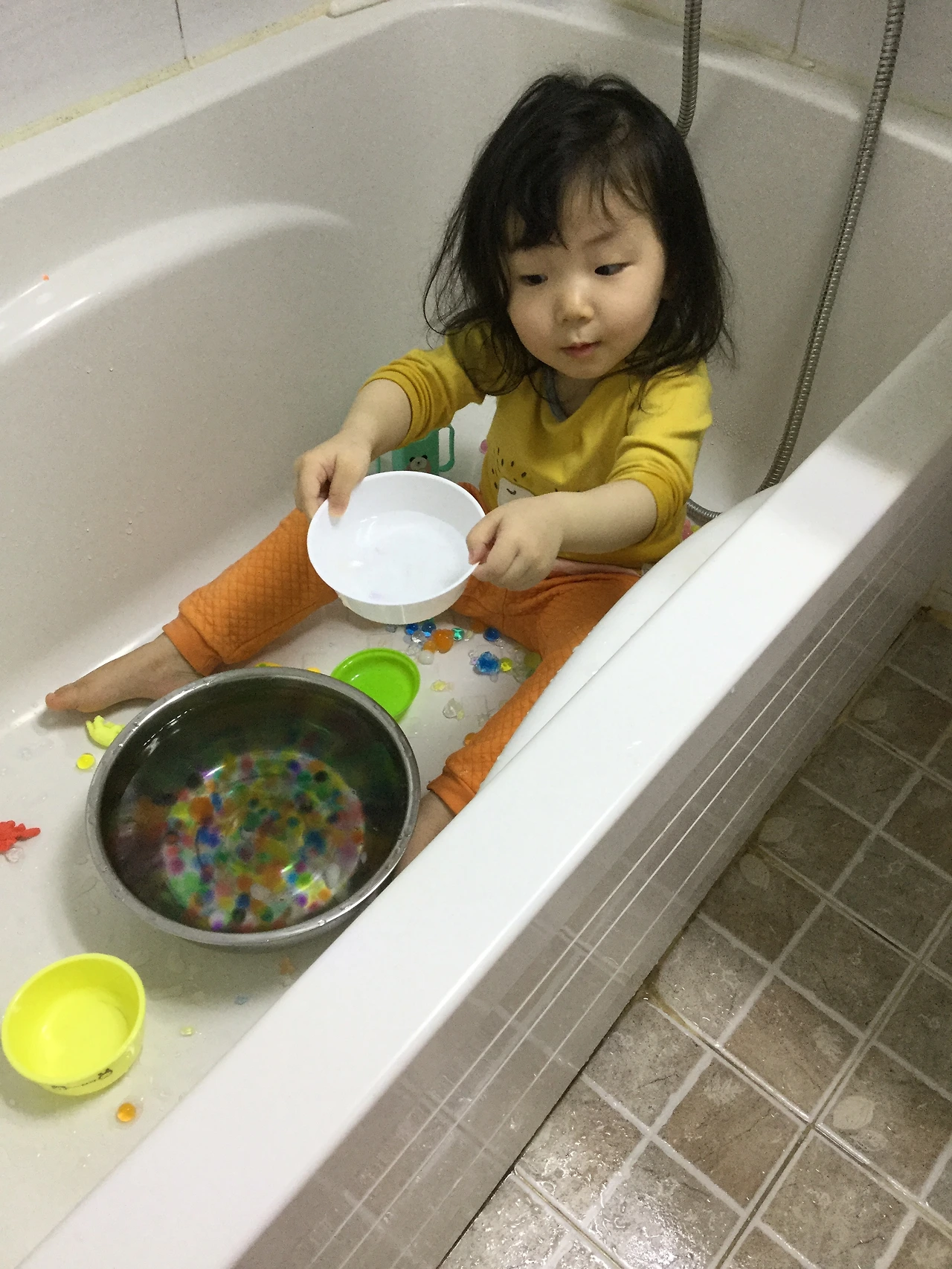 라온이가 잘 때, 얼집에 있을때 다온이는 신나게 수정토를 가지고 논다.