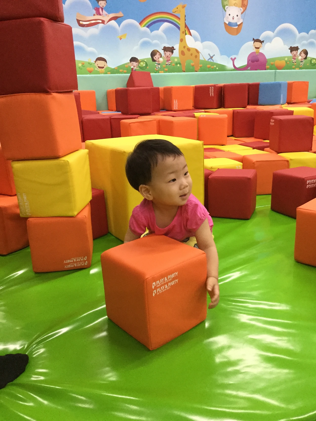 큰 방방에서 뛰고 있는데 갑자기 네살짜리 여자아이가 다온이 옆으로 다가오니 다온이가 급하게 다른 라인으로 피했는데 그 아이는 다온이랑 놀고싶었는지 따라오고 다온이는 도망가고 그 아이는 따라오고 결국 서러워진