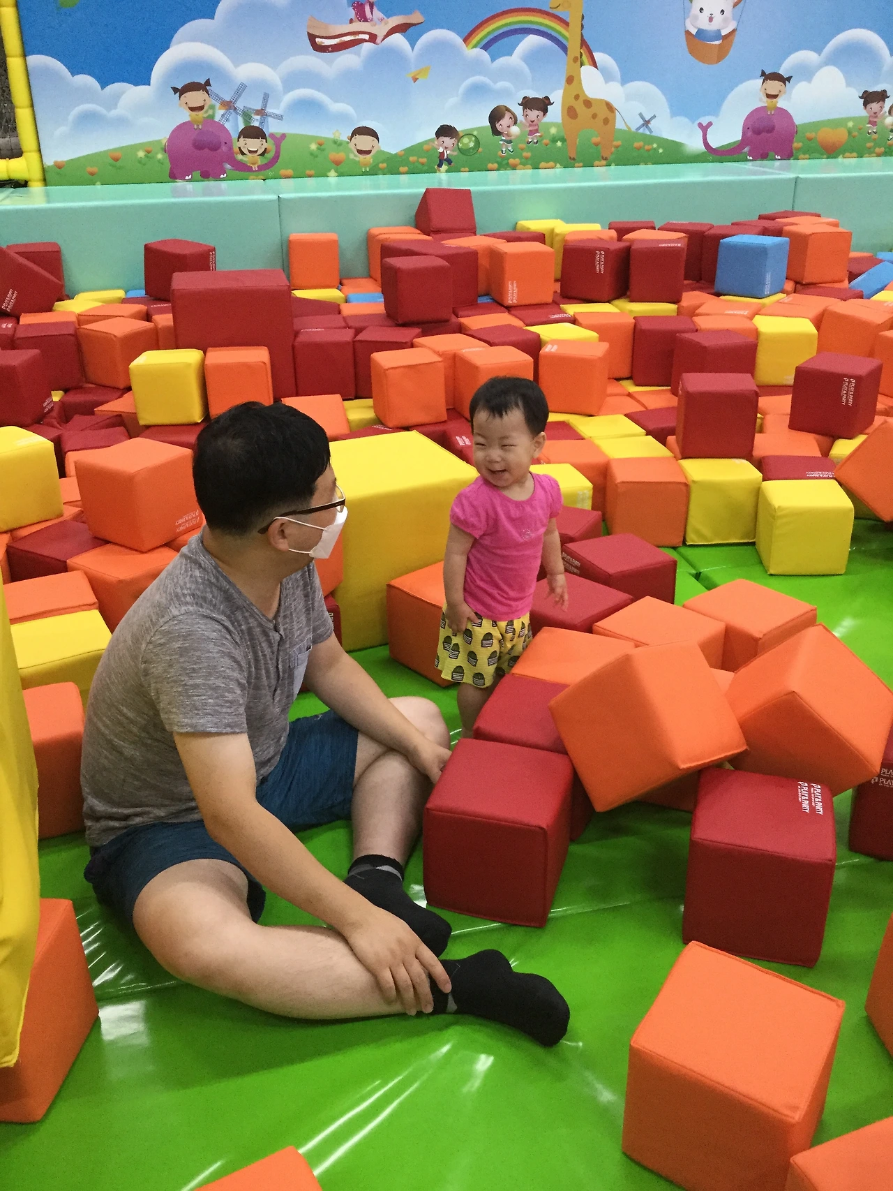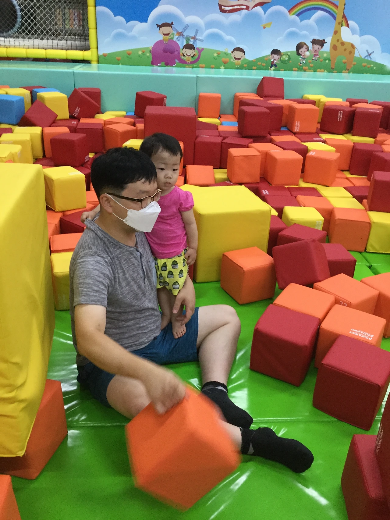 그런데 옆에 있던 다른 가족은 아이 한명에 아빠 엄마가 같이 놀아주고 있었는데 한참 잘 놀던 다온이가