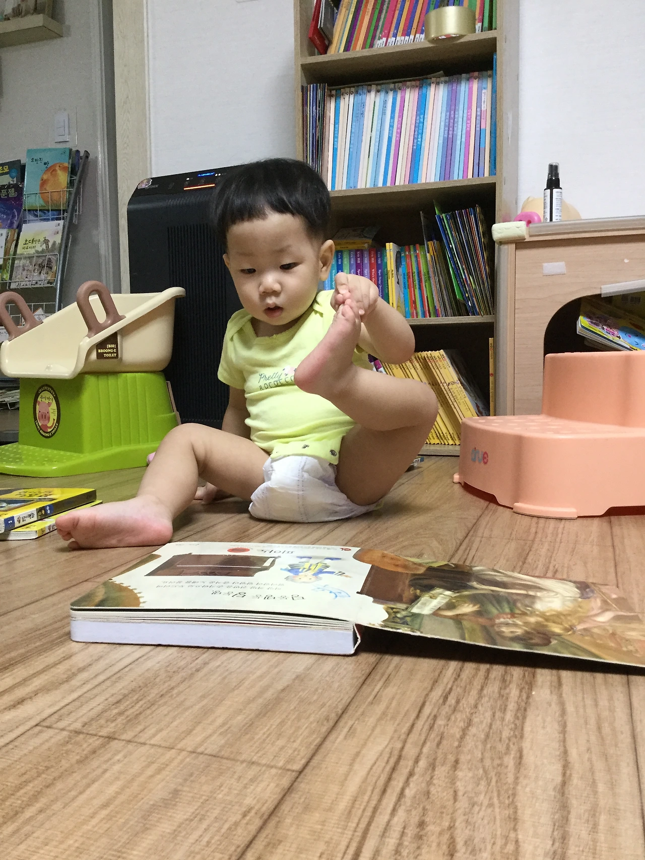 라온이가 태어났는데, 이게 왠일일까. 라온이가 책을 보기 시작한 이후