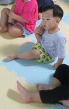 집중하는 라온이, 발은 왜든거니? ㅋㅋㅋ 다온이 동생 아니랄까봐 라온이도 엄청 유연해서 발바닥을