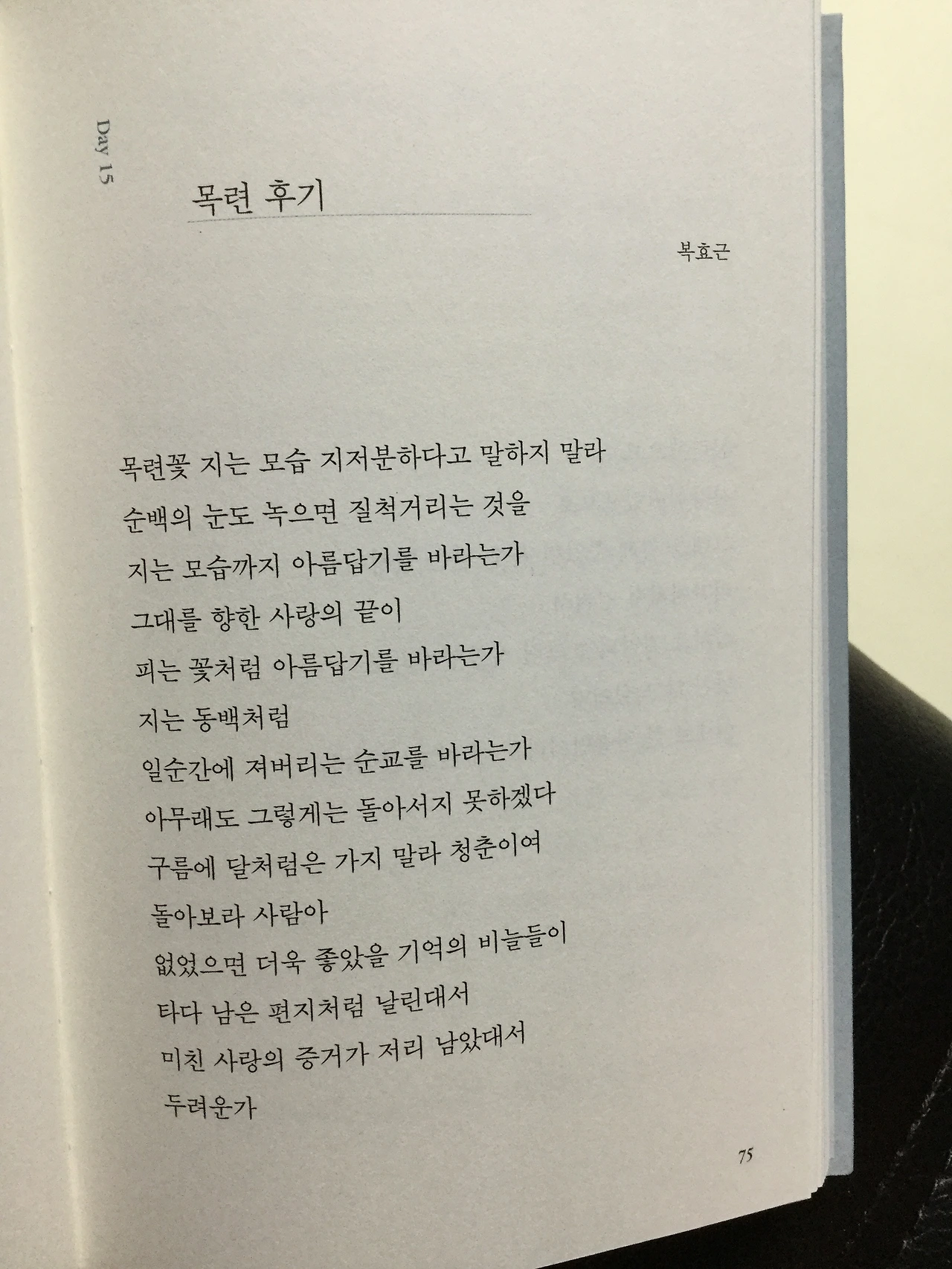 이 시를 읽는 동안 웅장하니 아름다웠던 목련나무와 모든 꽃잎이 떨어져 밟혀 처참하기 그지없었던