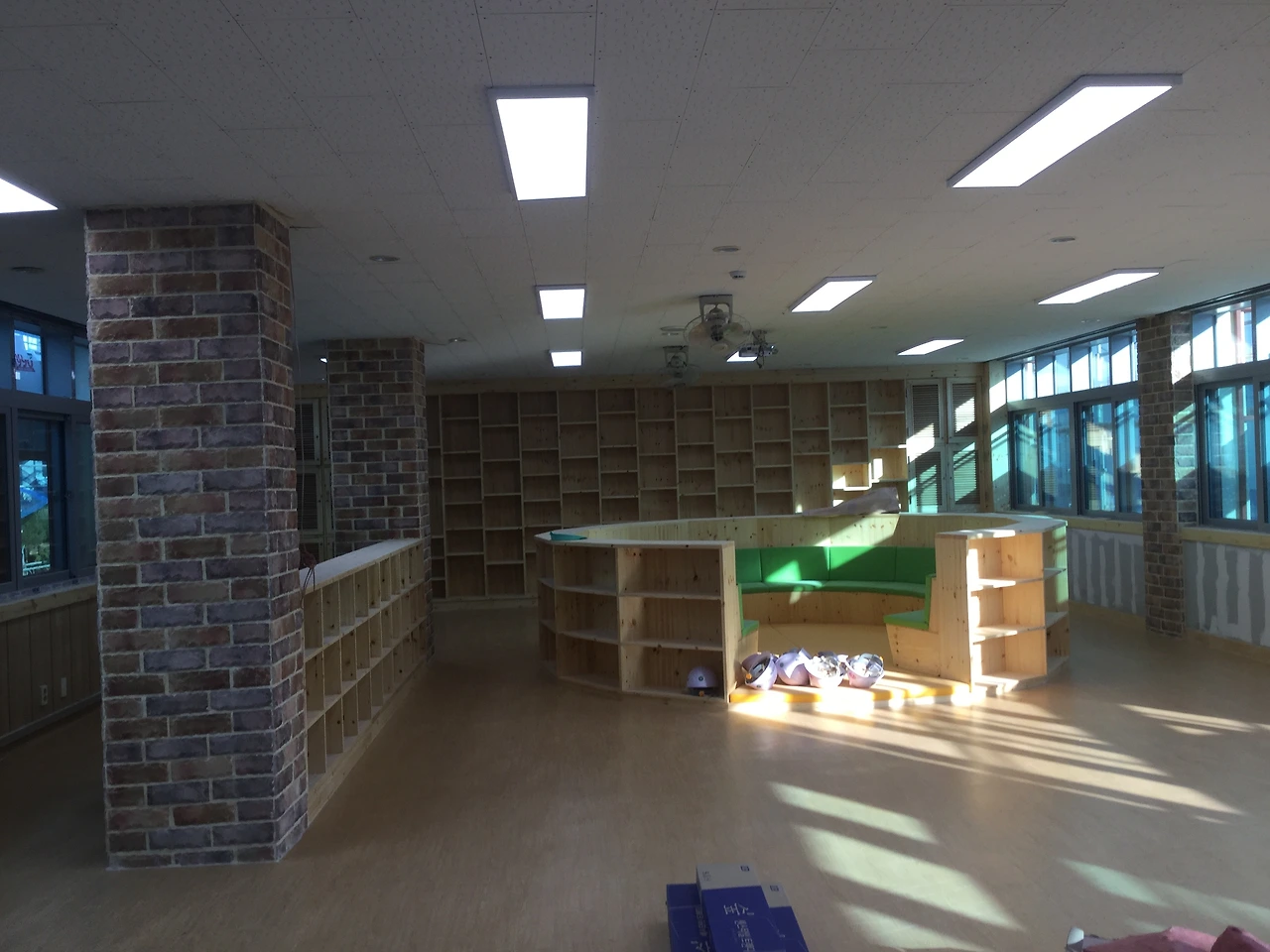 역시 해놓으니 참 깔끔하고 이쁘긴 하다. 내 눈엔 그렇다. 우리 학교 도서관이 아니라 여기는 작은 시골 동네니까 시골 동네 어린이 도서관으로 써도 될 만큼 정말 예쁜 모습이다. 완전히 준공이 되면 더 이쁘겠지 하는 기대가 절로든다.
