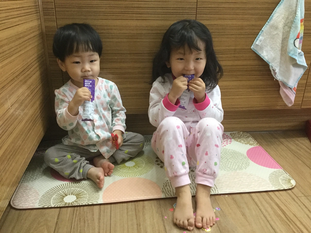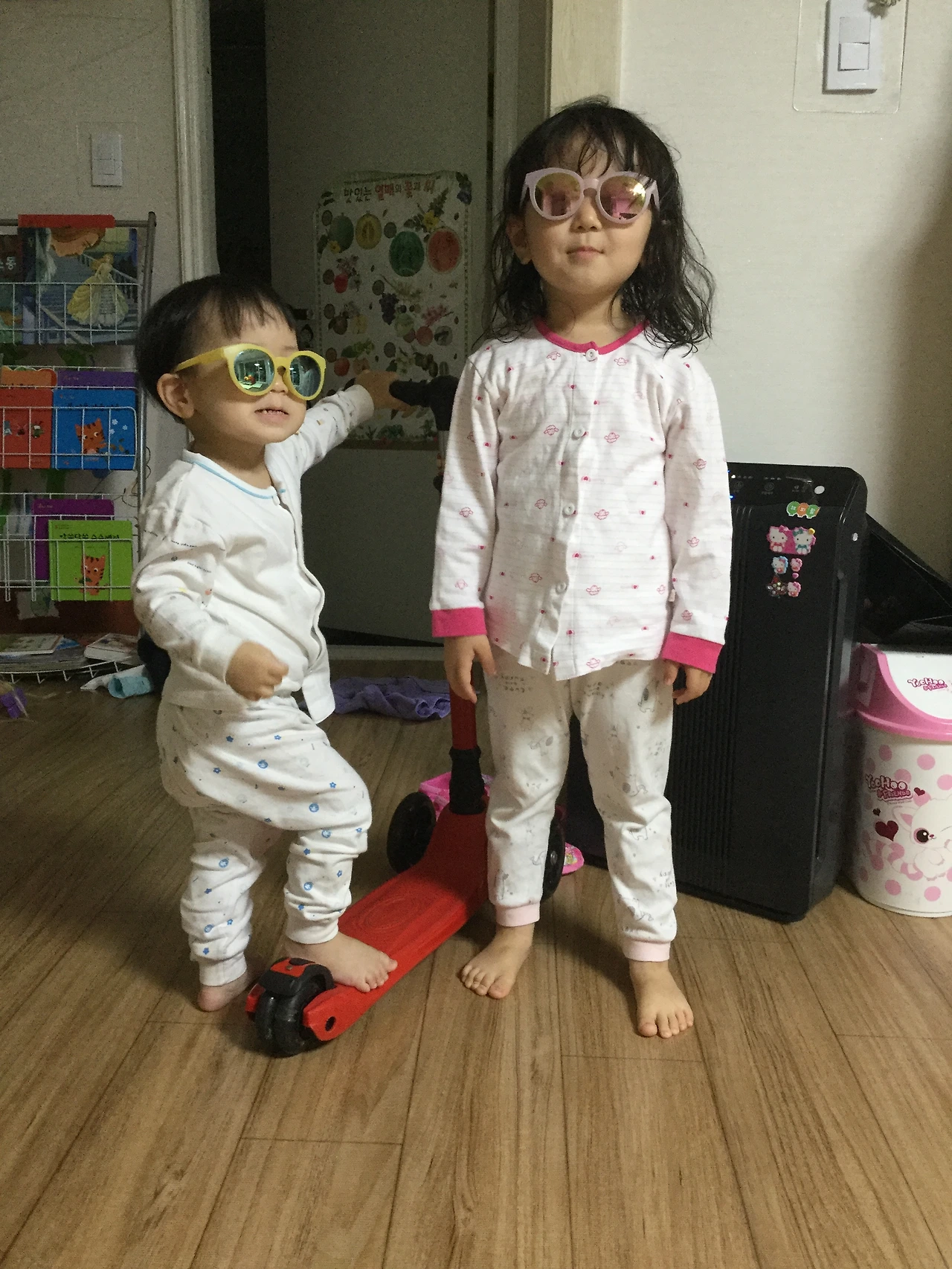 요새 우리 집의 최대 화두는 (네가 하는 건 나도 해야 한다.)이다. 주로 라온이의 삶의 모토인 듯한데, 누나가 하는 건 자기도 다 해야 한다 주의이다. 누나가 하는 건 다 해야 하고, 먹는 건 그게 뭔지 몰라도 다 먹어봐야 하고, 보는 것도 캐릭터에 대해 하나도 몰라도 일단 소파에 앉아서 티비보고 책도 하나도 못 알아들어도 일단 앉아서 자기도 들어야 한다. 대부분의 경우에는 웬만하면 둘 다 같이 하게 해 줘서(둘째라서 그런지 그냥 다온이가 먹는 건 다 나눠먹게 한다. ㅜㅜ 다행히 다온이가 잘 나눠주는 편...) 크게 다툼 일어날 것은 없는데 문제는 어떤 것이 하나만 있을 때이다. 집에 하나뿐인 미끄럼틀, 스프링카, 킥보드 등등.. 나이를 불문하고 사람 심리는 다 똑같은지 다른 거 하고 있다가도 누구 하나 스프링카를 타고 있으면 꼭 그게 타고 싶어 지나 보다. 투닥투닥 정말 왜 그러는 거니 ㅜㅜ