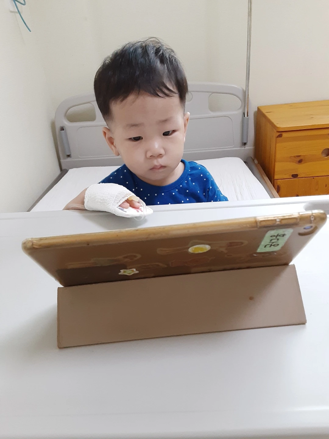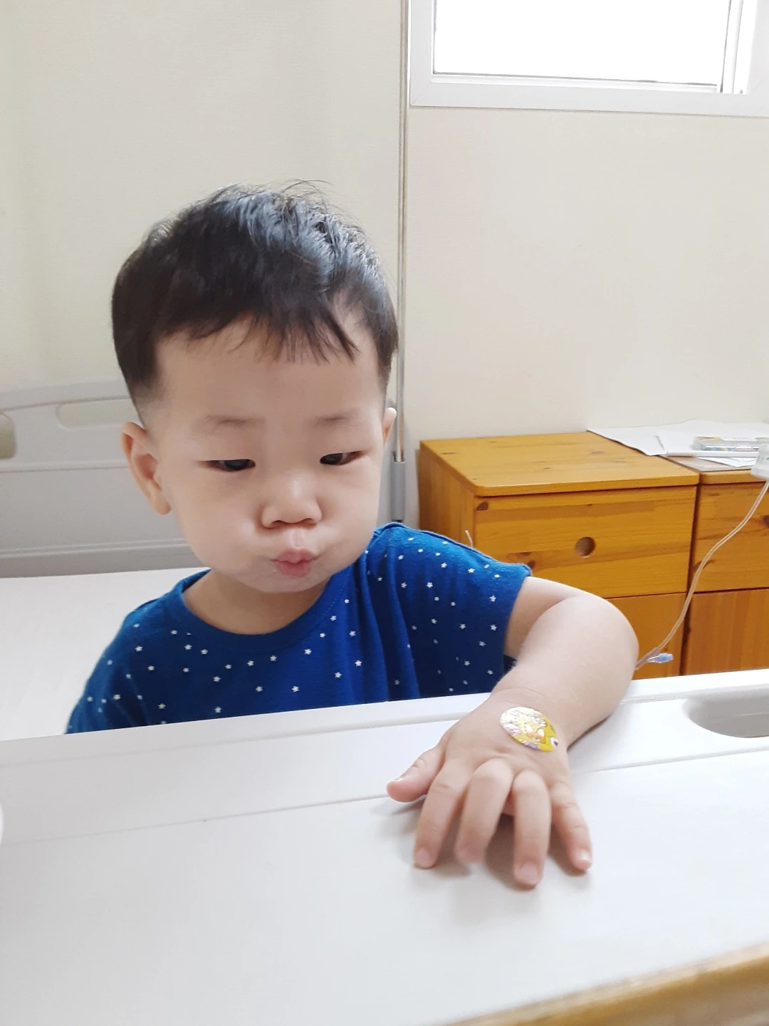입원 당일(화요일) 아이의 열은 떨어지지 않았다. 작은 손에 수액 바늘이 꽂히고 가루약, 물약, 해열제에 하루 한번 항생 주사까지. 고행이 시작되었다. 남편보다는 내가 연가 쓰기가 수월해서 수목금을 다 연가를 냈다.