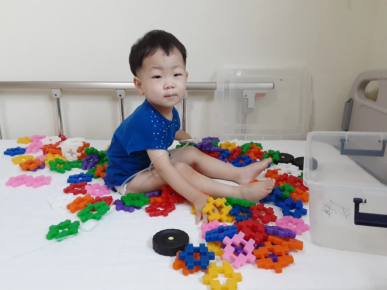 결국 입원. 피검사 결과 아이의 백혈구 수치와 혈소판 수치가 아주 아주 아주 아주 낮다고 했다. 그런데 이 와중에 비타민 D 수치는 너무 높아서 (함@아 비타민 d를 너무 좋아해서 두 알씩 먹였더니... 당분간 안 먹이려고 한다.) 주의도 받았다.
