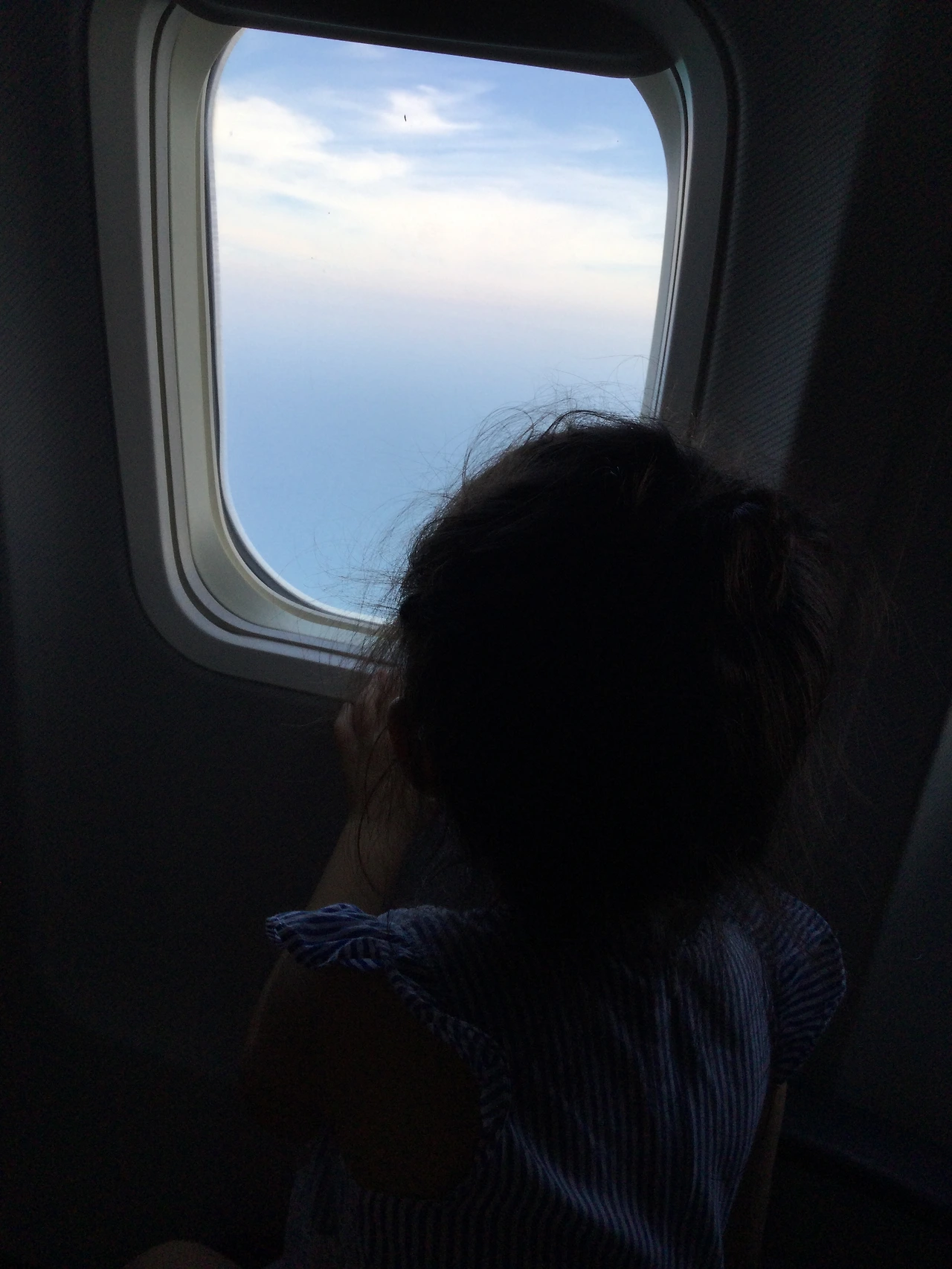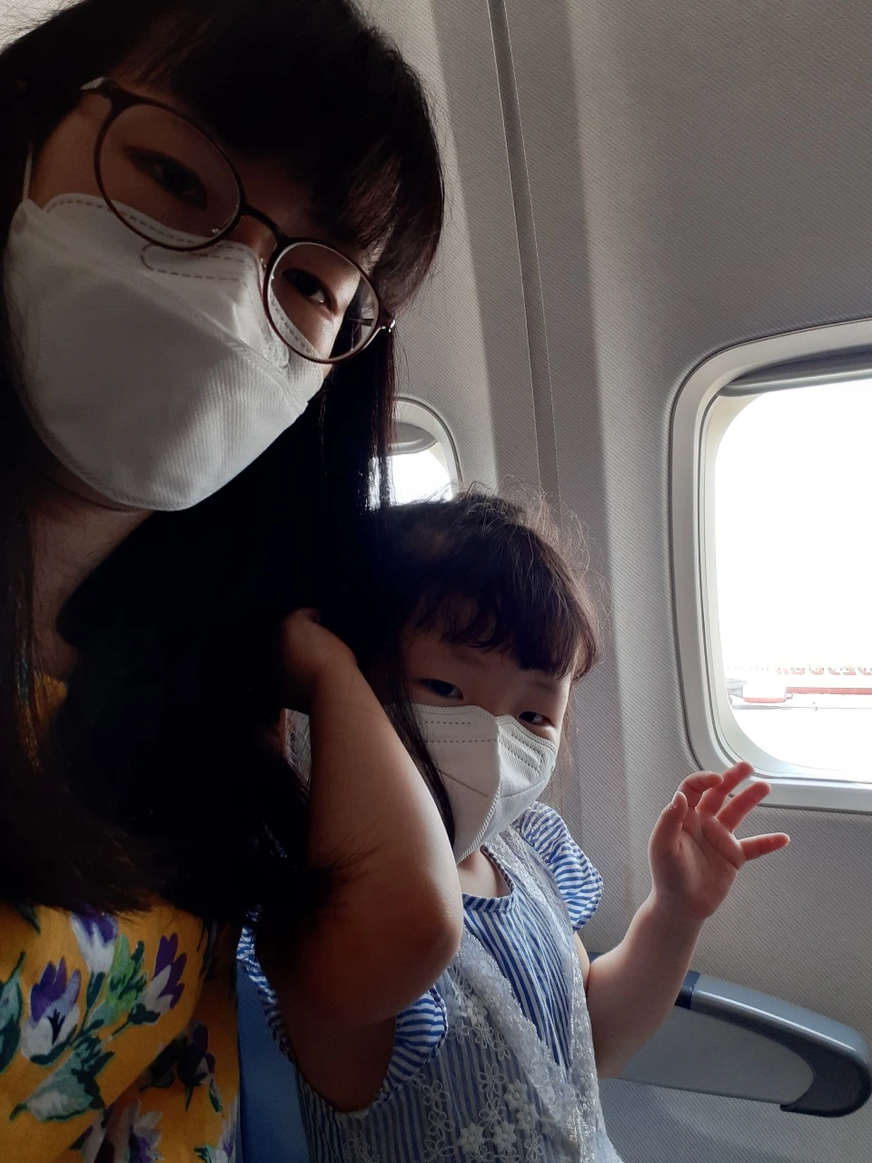 비행기를 처음 타본 라온이와 두 번째 타는 것이지만 기억을 못 해서 처음 타보는 듯한 다온이는 비행기에 타자마자 흥분하기 시작했다. 이것이 비극의 서막이었다. 나도 너무 오랜만에 타는 비행기라 꽤나 긴장한 상태였는데 두 비글이 옆에서 계속 움직이고 떠들어서 통제하랴, 내 마음 진정시키랴, 제주에 도착하기도 전에 과부하가 걸린 것이다. 우여곡절 끝에 비행기가 활주로를 달리고 달려 하늘로 날았다. 오오오오오오오... 처음 느끼는 기압에 놀란 라온이가 안아달라고 하는 바람에 자리에 앉아있어야 한다고 어르고 달래랴, 구름이 눈앞에서 보이니 저거 보라고 흥분한 다온이 목소리 낮추라고 얘기하랴 정말 혼이 쏙 빠지는 기분이었다.