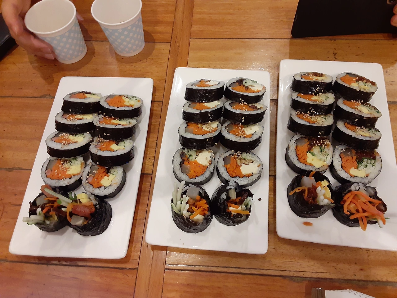 그때부터 두통이 시작되었다. 하지만 참을 수 있을 정도였다. 어금니로 머리를 부여잡고, 양손으로는 다온이 라온이를 붙잡고 서자매김밥으로 향했다. 그런데 두둥. 리모델링으로 인해 휴업이란다. 그래서 주변 식당을 돌아보았다. 그런데 약속이라도 한 듯이 주변 식당이 다 휴가를 떠난 것이다. 두통이 더 심해졌다. 다행히 남편의 기지로 "바르다 김 선생"이라는 김밥집을 찾아 들어갔다. 제주도까지 가서 무슨 김밥집이냐 하는 생각이 들었지만 다온이가 김밥이 먹고 싶다고 했고, 두통에 허기까지 겹친 나는 컨디션이 최악이었기에 배에 무엇이든 넣어야 하는 상황이었다.