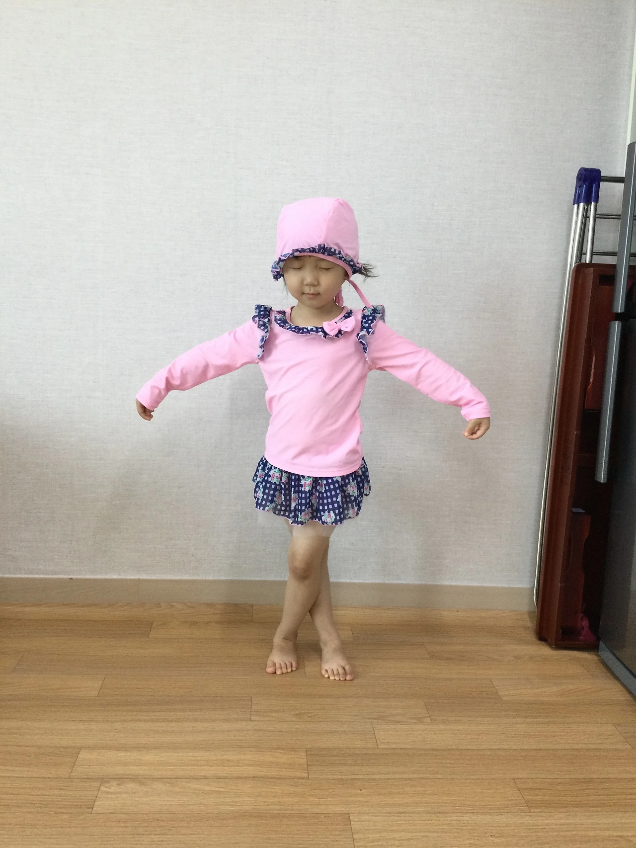 그래서 당장 바다로 나가자고 했다. 숙소 앞에 아름다운 해변이 펼쳐져 있었기 때문이다. 아파트가 없는 제주에서는 유난히 하늘이 가깝게 느껴졌는데 특히나 해변가에 나가면 맑은 바다에 푸른 하늘까지, 여기가 천국인가 싶었다. 남편이 튜브에 바람을 넣는 동안 아이들을 래시가드로 갈아입혔는데ㅡ진짜 아이들 생에 첫 래시가드가 이렇게 찰떡일 수 있나. 가슴에서 사랑이 퐁퐁 솟아났다.