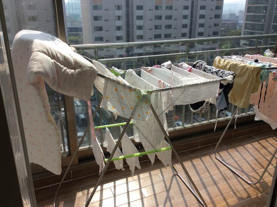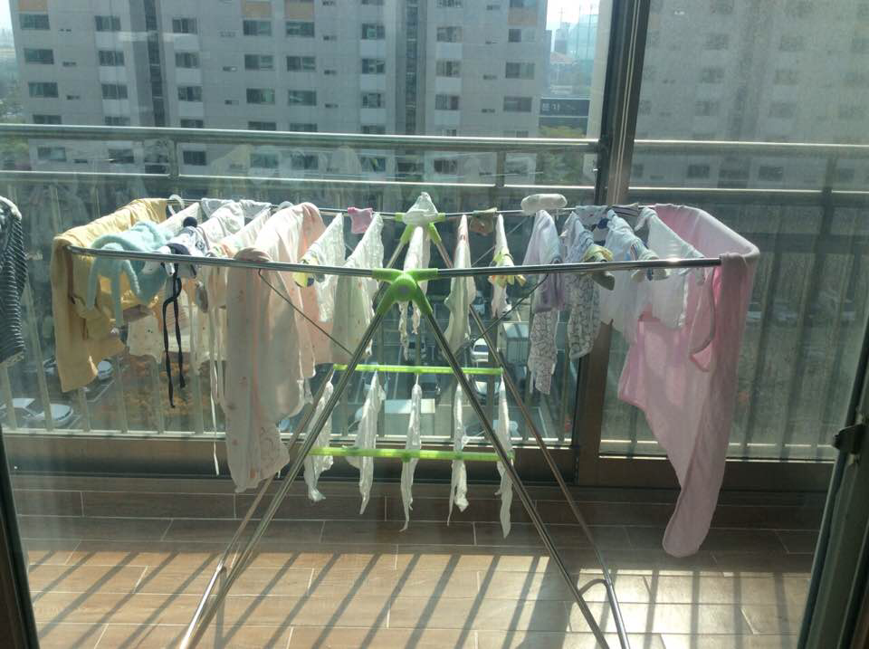 햇빛에 자연살균을 해야한데서 진짜 반짝 해가 뜬 날 빨아서 널었으나.