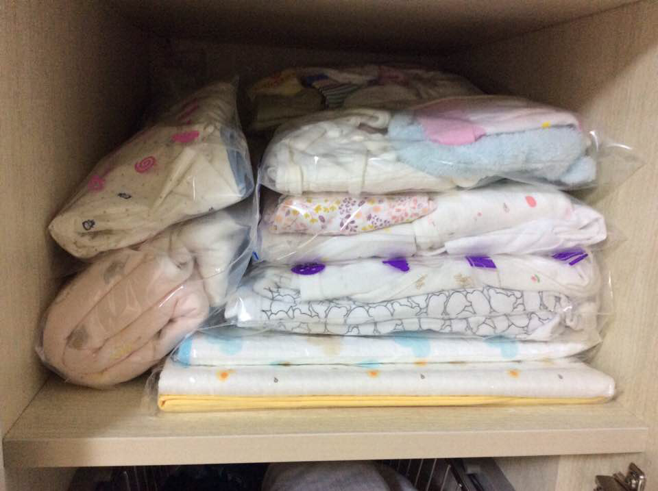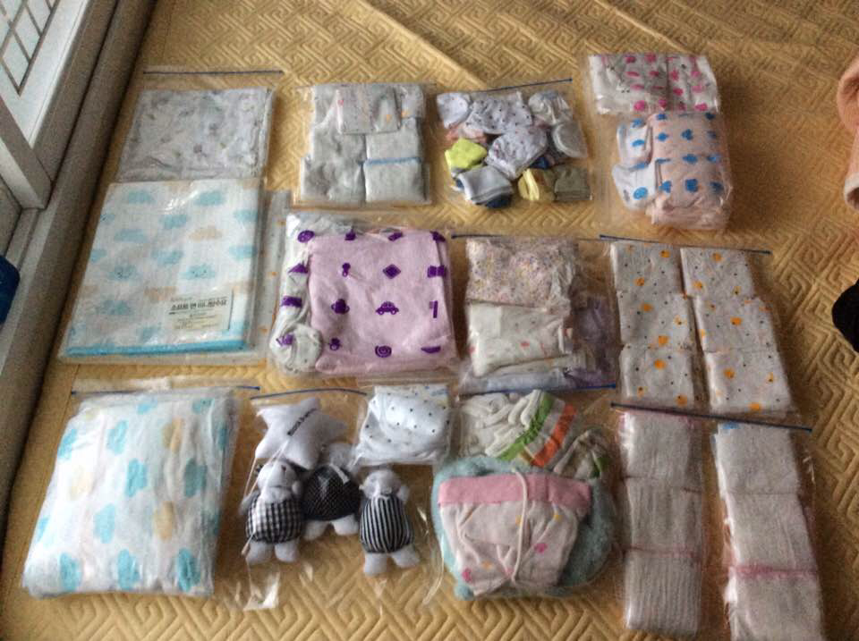 어머님이 사주신 아가 옷이나 손수건들과 물려받은 것들을 모조리 꺼내서