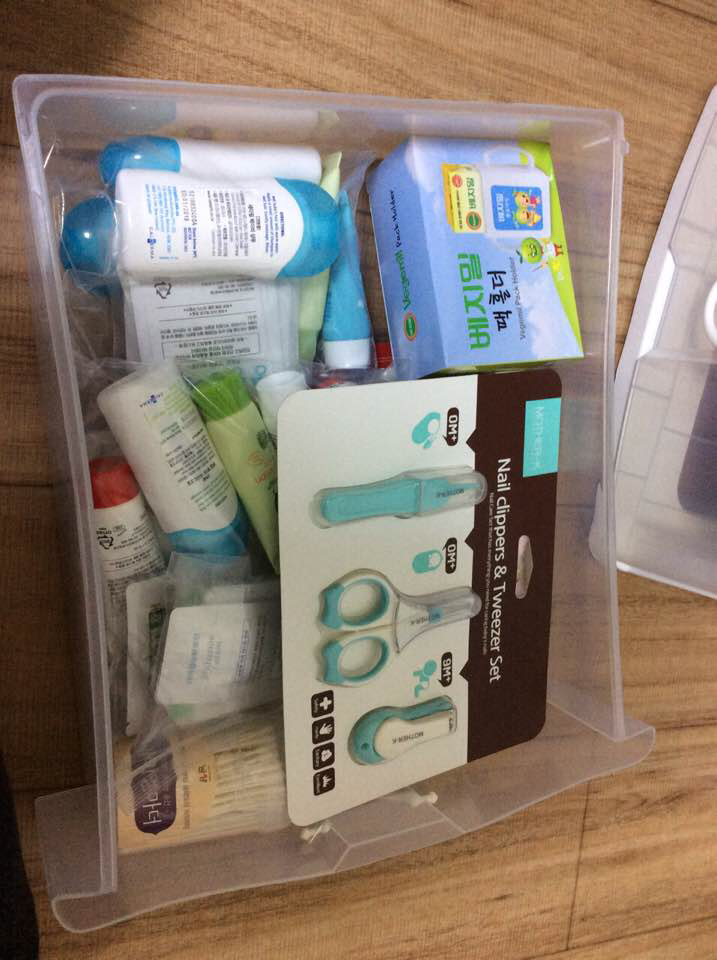 여기저기서 받은 기저귀 샘플. 애기 화장품 워셔제품 면봉 등등..이번에 산 손톱가위세트. ㅋㅋ