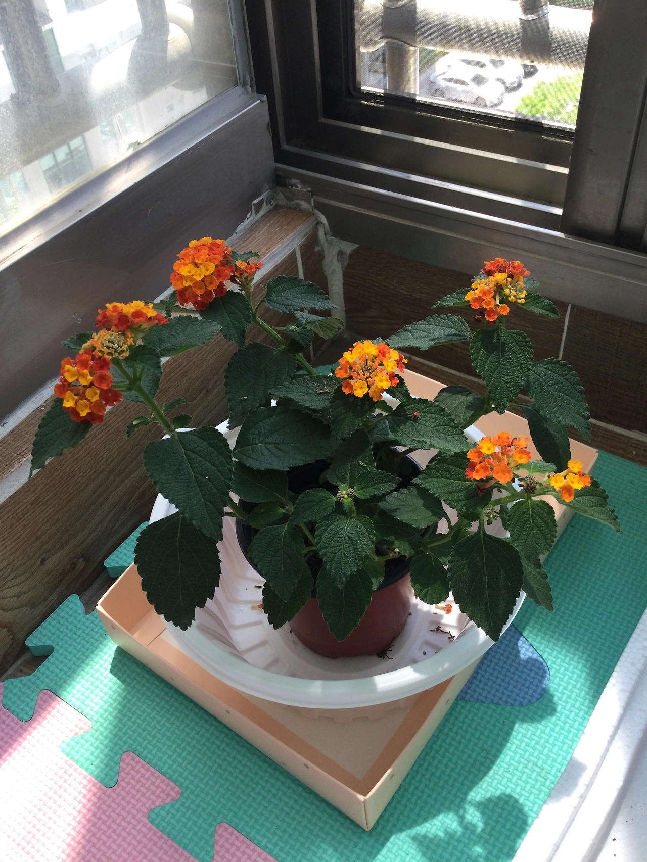 마지막으로 가장 최근에 우리 집에 들어온 란타난! 이름도 생소한 이 꽃은 아주 진짜 작은 꽃송이들이 다닥다닥 붙어 마치 주먹밥처럼 피는 신기한 꽃이었다. (여기서 중요한 건 난 도트무늬 트라우마가 있어서 이렇게 다닥다닥 붙어 있는 모습을 견딜 수가 없는데 이 꽃을 볼 때는 아주 조금 괜찮다는 것이다. 물론 오래 들여다보면 정수리부터 시작해 온몸에 닭살이 돋는다. 으...)